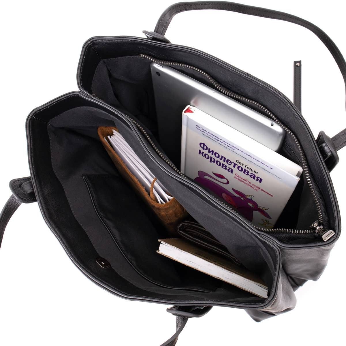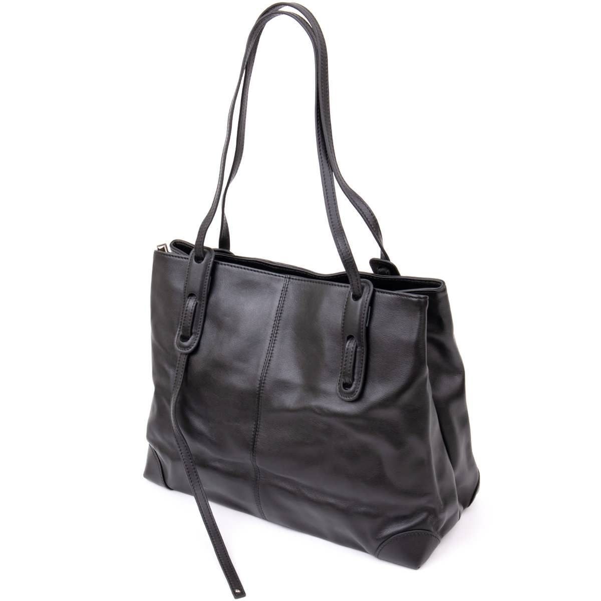 Містка сумка в гладкій шкірі. Модель має достатньо місця для речових ділових паперів. Виріб підійде для ділової жінки. Аксесуар має необхідний функціонал та два основні відділення. Жіноча сумка горизонтального типу та прямокутної форми. Виріб прослужить вам далеко не один рік і стане знахідкою для будь-якої дівчини. Сумка підійде для щоденного використання. Виріб зовсім невибагливий у догляді. У комплекті до сумки йде пилозахисний чохол. Якщо ви не знаєте, що подарувати жінці, рекомендуємо вам цю модель.