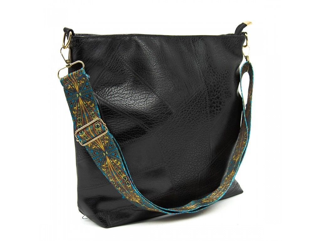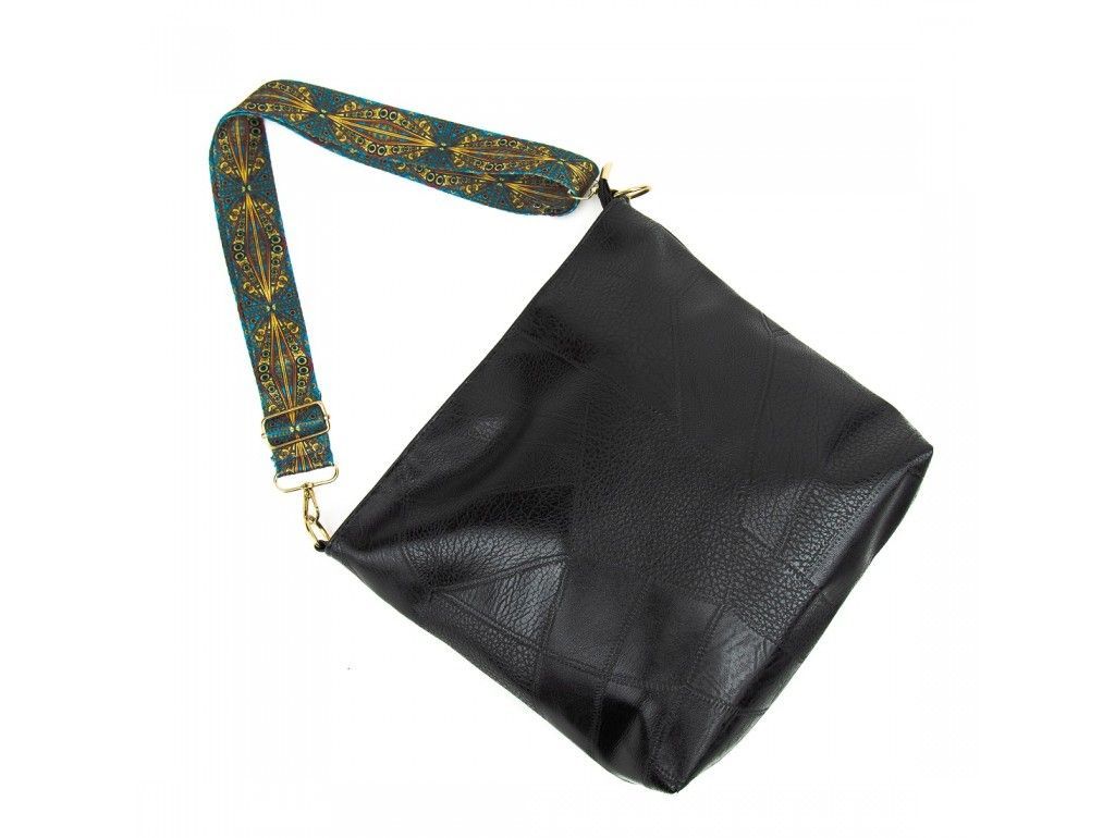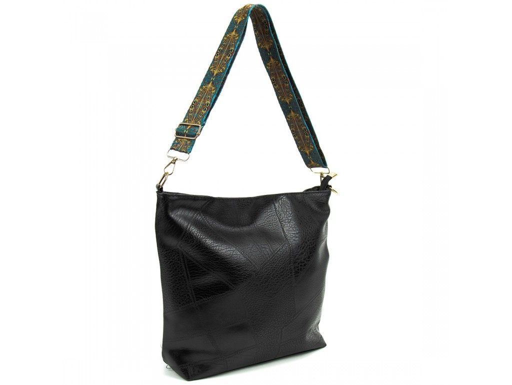 Сумка жіноча з еко-шкіри з тканинним ременем Lilly P1-6017A чорна
