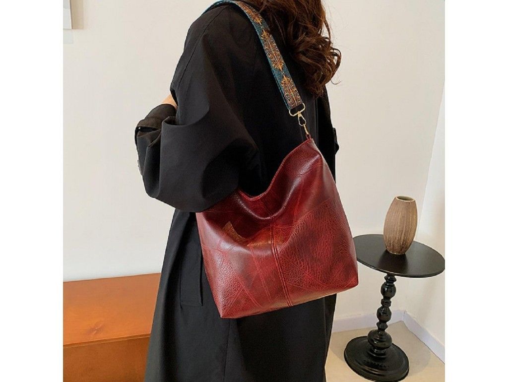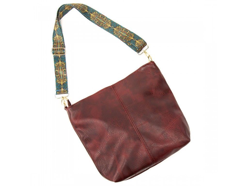 Сумка жіноча з еко-шкіри з тканинним ременем Lilly P1-6017BO бордо