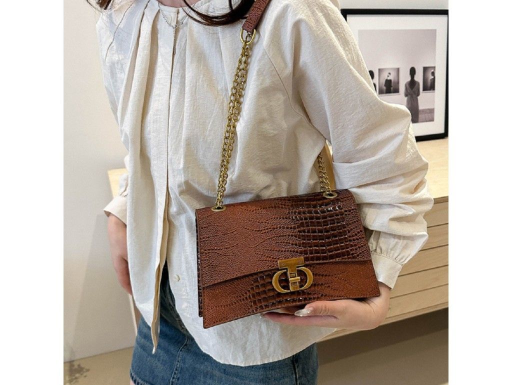 Сумочка на ланцюжку каркасна через плече Lilly P4-6536C коричнева