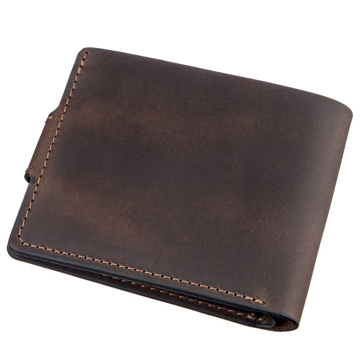 Тонкий класичний портмоне з натуральної італійської шкіри найвищої якості. Портмоне у класичному стилі завжди залишається на піку популярності. Аксесуар закривається на шкіряний хлястик із кнопкою. На лицьовій стороні виробу тиснений логотип бренду. Модель доповнена міцною сріблястою фурнітурою та прошита коричневою ниткою по краях. Виріб упакований у фірмову картонну коробку, яка може замінити подарункову упаковку. Портмоне стане чудовим рішенням для подарунка близькій людині.