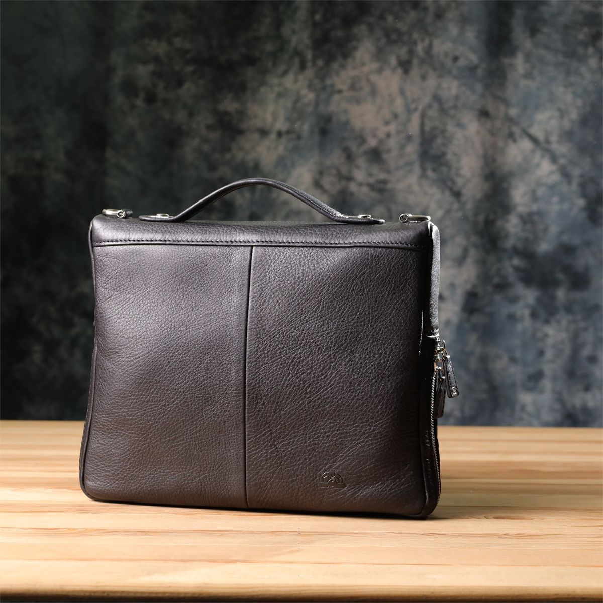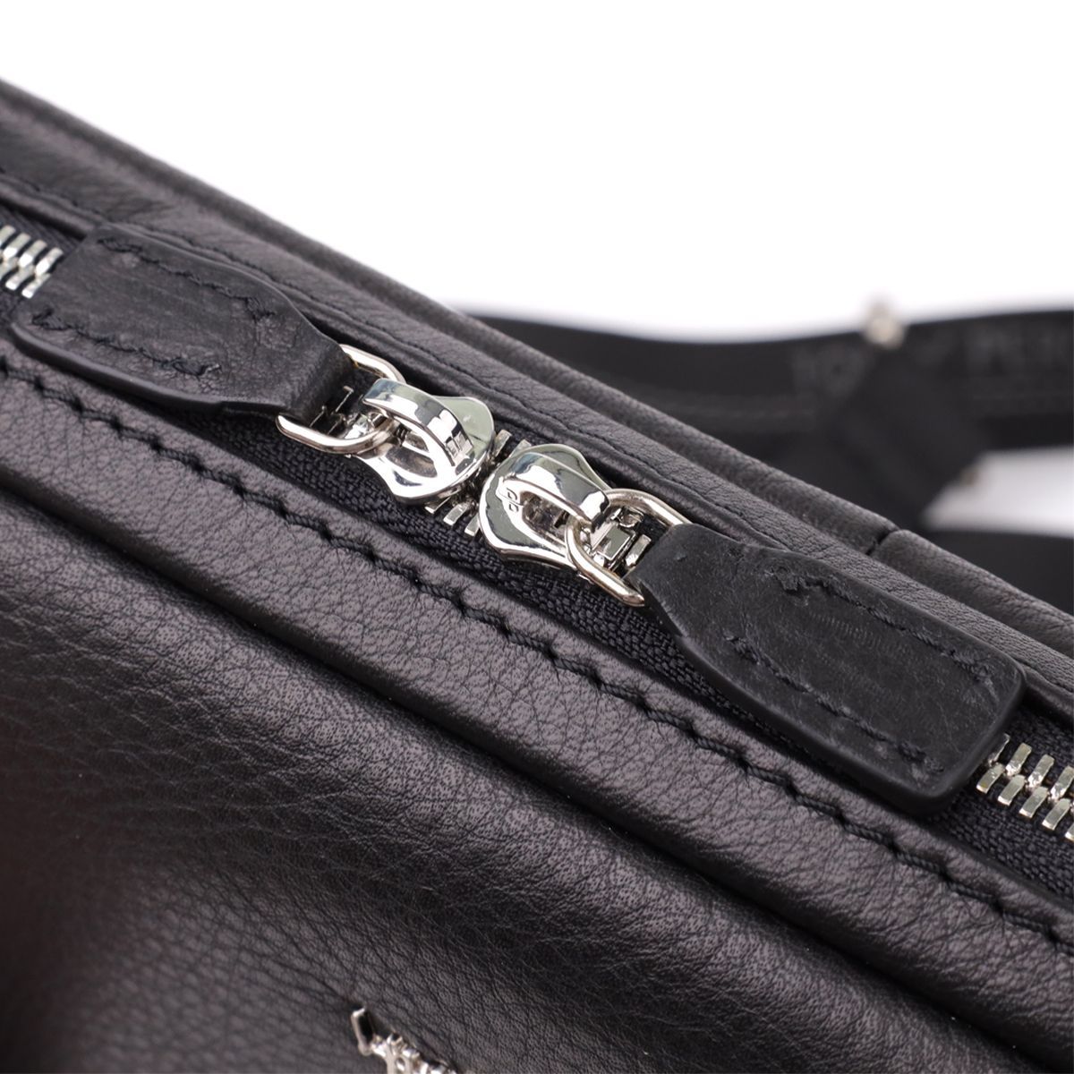 Чорна сумка для планшета Tony Perotti – зручність та надійність у сучасному дизайні. Сумка виконана з натуральної шкіри чорного кольору та оснащена шкіряною ручкою для перенесення, а також текстильним ременем. Основне відділення закривається на блискавку. Всередині розташована окрема кишеня для планшета на блискавці та додаткова потайна кишеня. Фурнітура кольору срібло підкреслює сучасний стиль та елегантність моделі. Такий аксесуар поєднує практичність, комфорт та стриманий дизайн, ідеально підходячи для повсякденного використання.