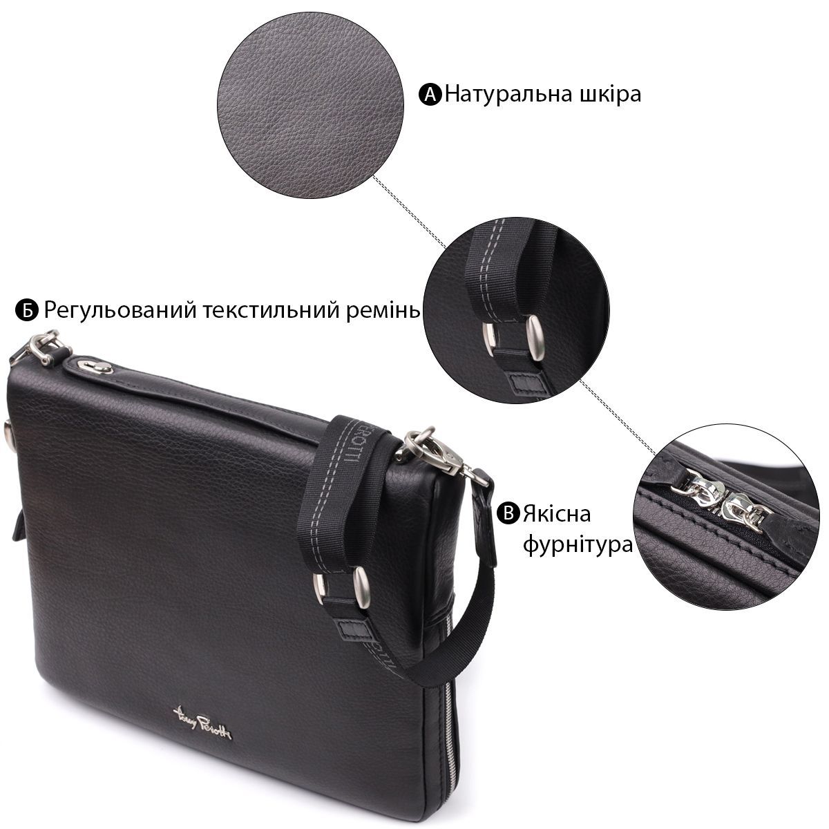 Цікава чоловіча сумка для планшета з м'якої натуральної шкіри Tony Perotti 20846_1 (9594-28 nero) чорна