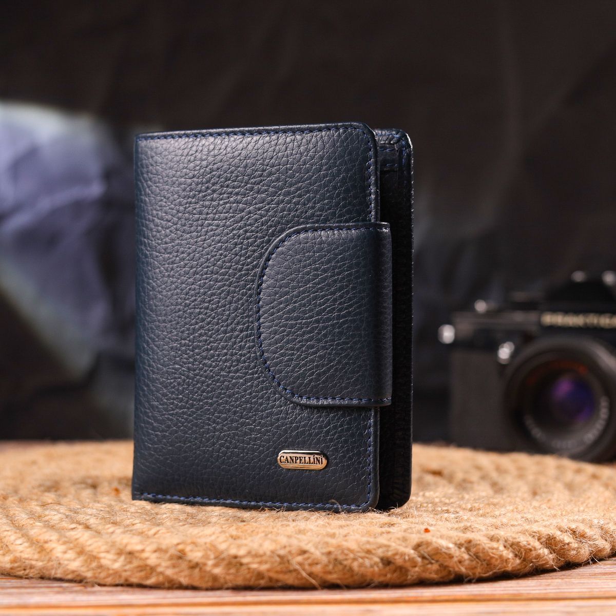 Цікавий вертикальний гаманець із натуральної шкіри Canpellini 21675 синій