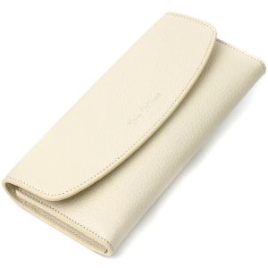 Сучасний жіночий гаманець з натуральної шкіри флотар, для якої характерна міцність, зносостійкість та зерниста фактура. Аксесуар складається з одного широкого відділення для купюр, дванадцяти осередків для пластикових карток, однієї прилеглої кишені та монетниці на блискавці. У виробі використано якісну фурнітуру золотистого кольору. Закривається гаманець клапаном на кнопку. Купуючи цей шкіряний гаманець, Ви не тільки набуваєте стильної речі, але й отримуєте якісний аксесуар, який прослужить не один рік.