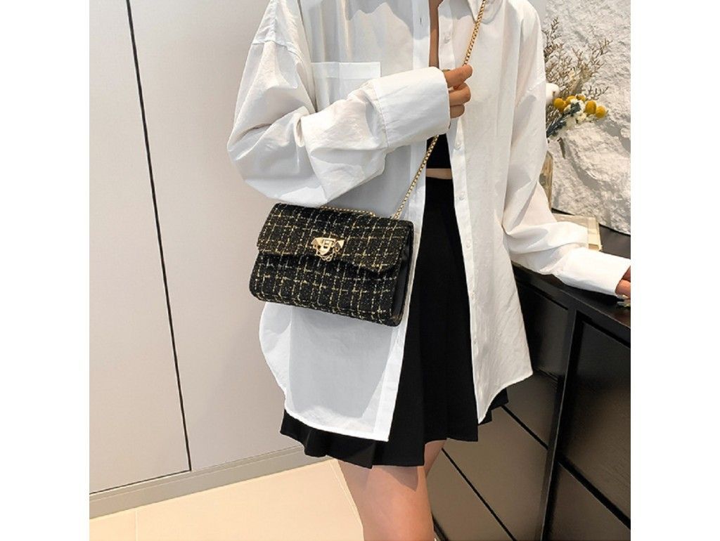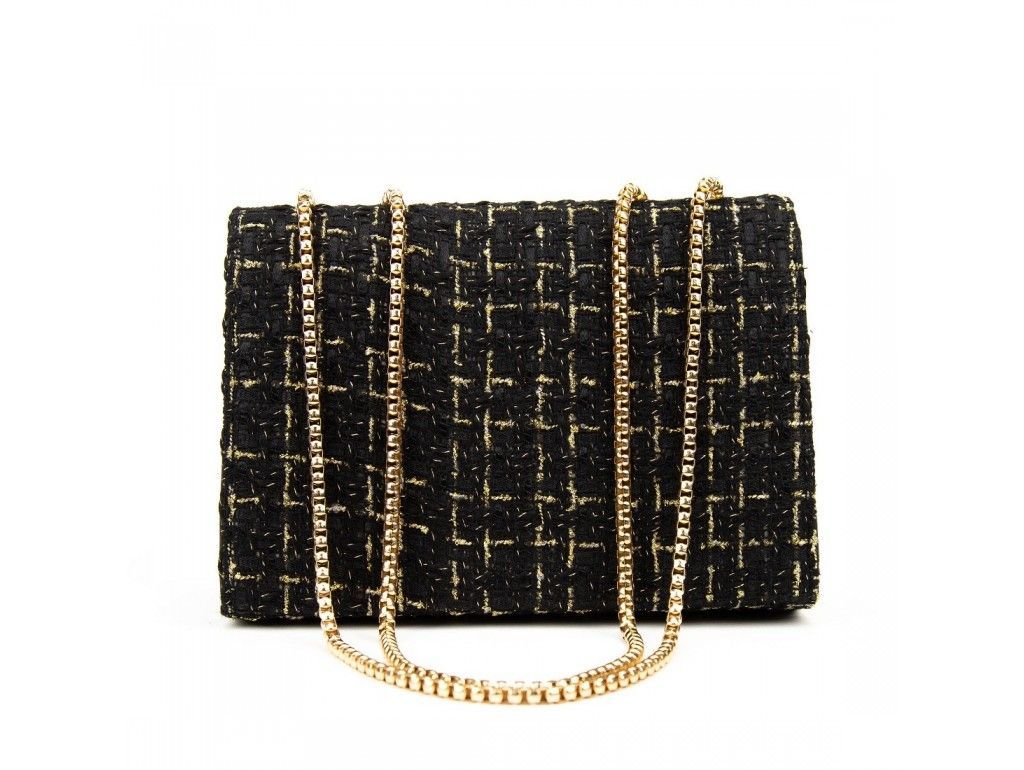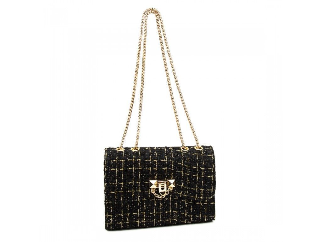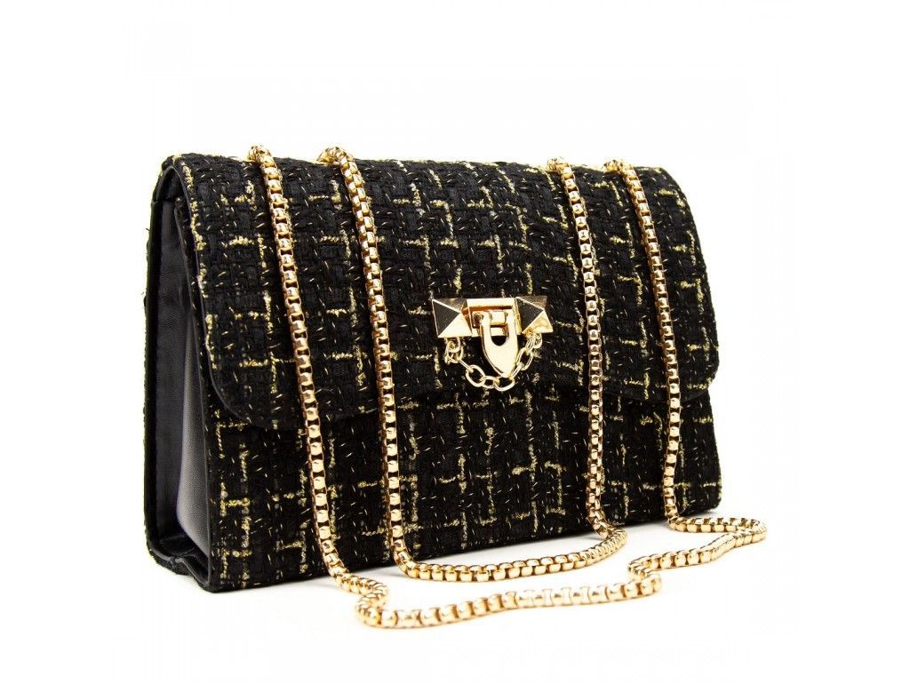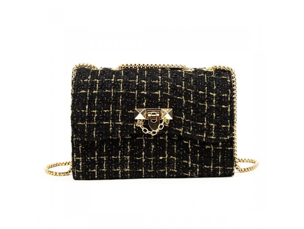 Твідова сумка на ланцюжку з клапаном Lilly P2-1401-1A чорна