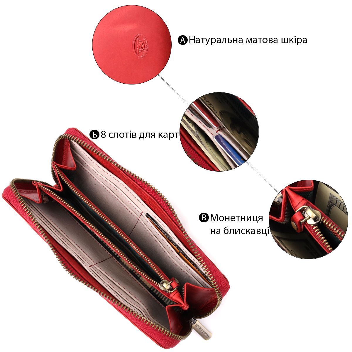Унікальний жіночий гаманець з матової натуральної шкіри Tony Perotti 20834_1 (2250 rosso) червоний