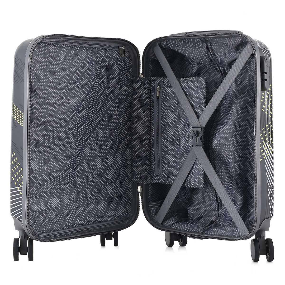 - Валіза має текстильну перегородку на блискавці, яка поділяє внутрішній простір на два основні відділення.
