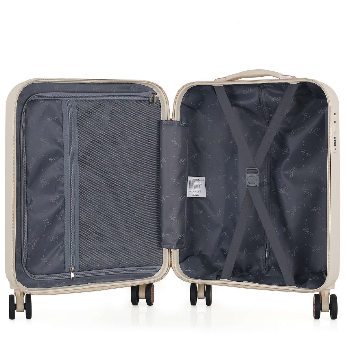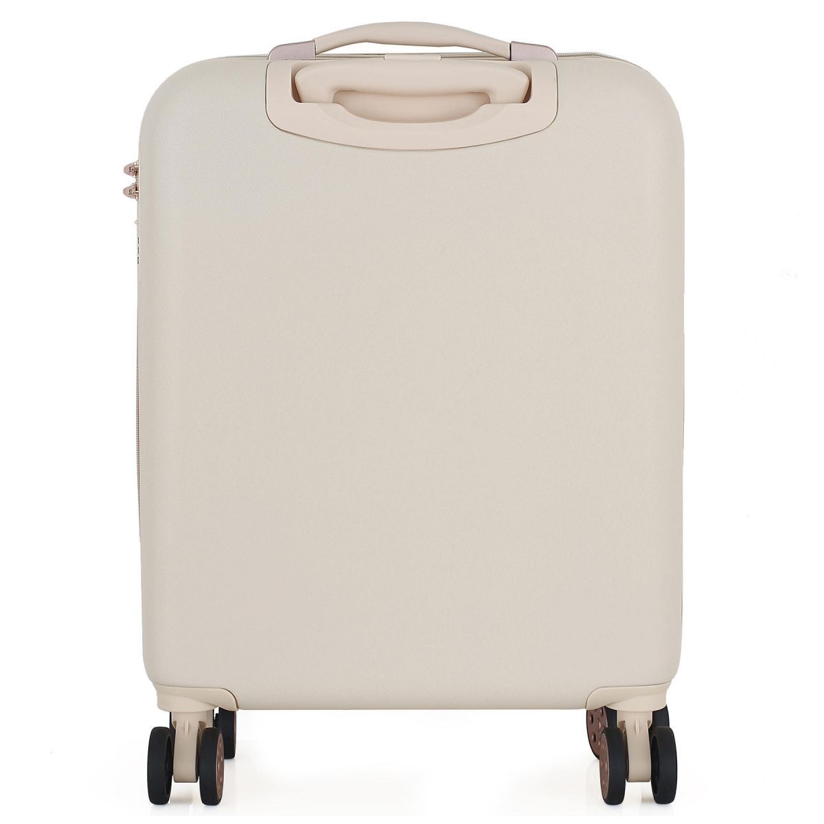 - Повноповоротні колеса - дана модель оснащена чотирма обертовими на 360 ° здвоєними колесами. Здвоєні колеса забезпечують кращий розподіл ваги та стійкість валізи, відмінне зчеплення, маневреність та мають більшу зносостійкість. Колеса кріпляться на 4 гвинти зсередини, що забезпечує високу стійкість при ударному навантаженні з будь-якого боку і дозволяє їх замінити у разі зносу.