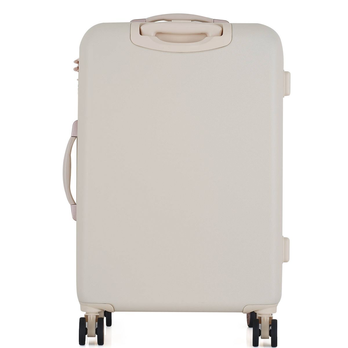 - Повноповоротні колеса - дана модель оснащена чотирма обертовими на 360 ° здвоєними колесами. Здвоєні колеса забезпечують кращий розподіл ваги та стійкість валізи, відмінне зчеплення, маневреність та мають більшу зносостійкість. Колеса кріпляться на 4 гвинти зсередини, що забезпечує високу стійкість при ударному навантаженні з будь-якого боку і дозволяє їх замінити у разі зносу.