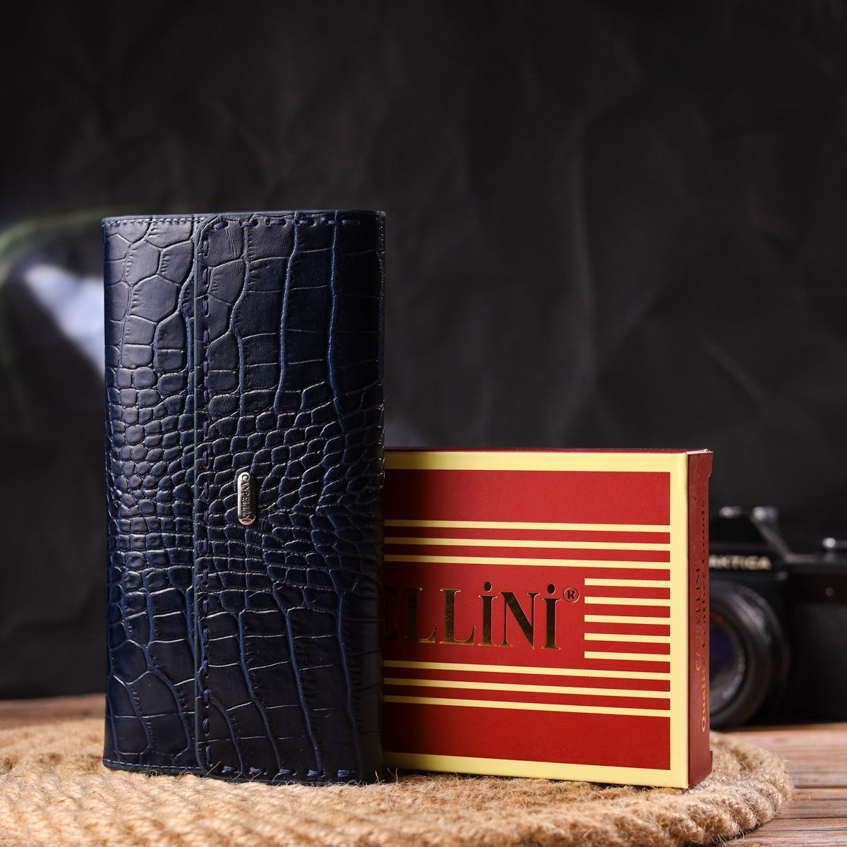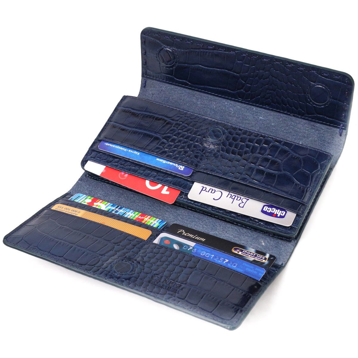 Великий жіночий гаманець із натуральної шкіри з тисненням під крокодила Canpellini 21661 синій