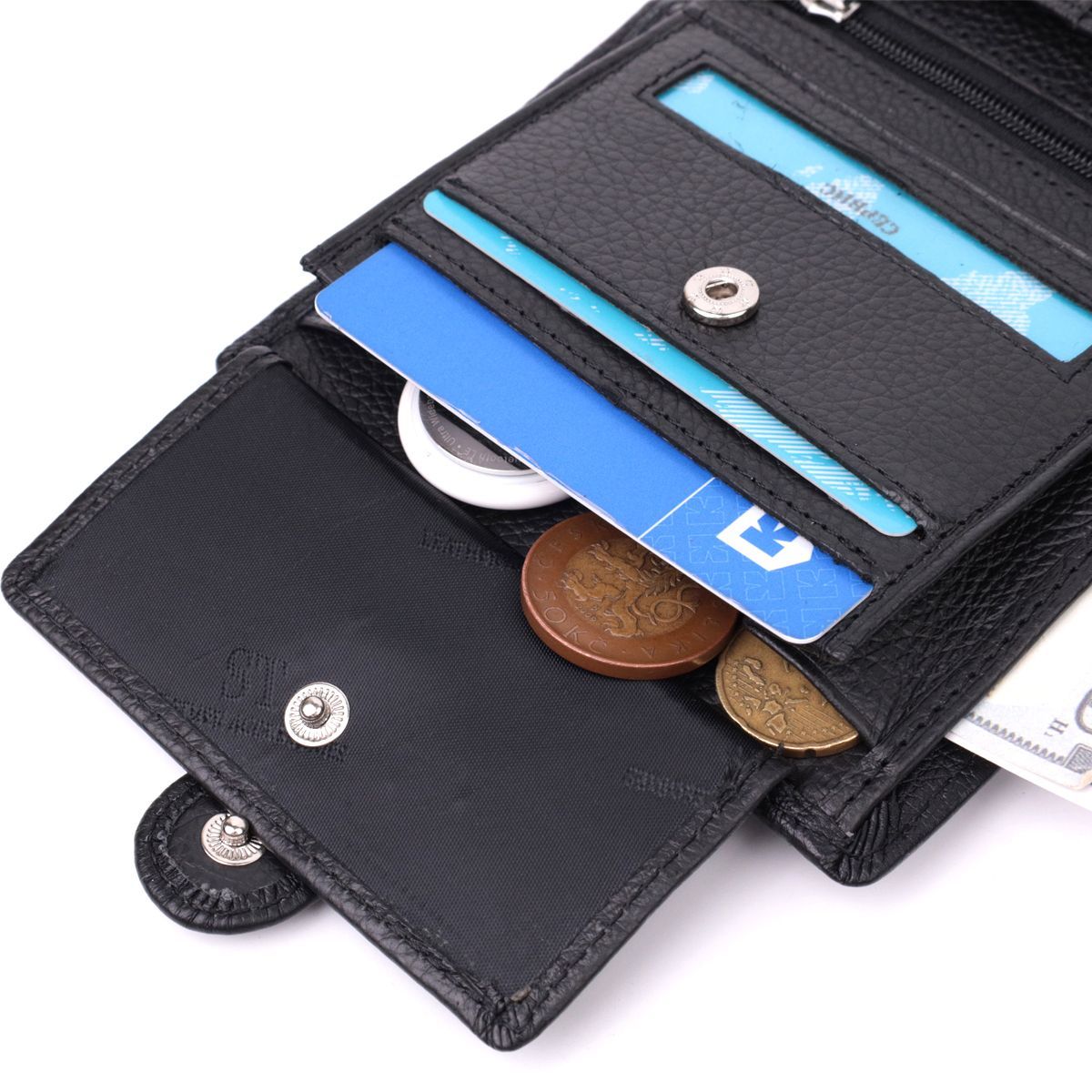 - 1 кишеня для монет на кнопці під клапаном;