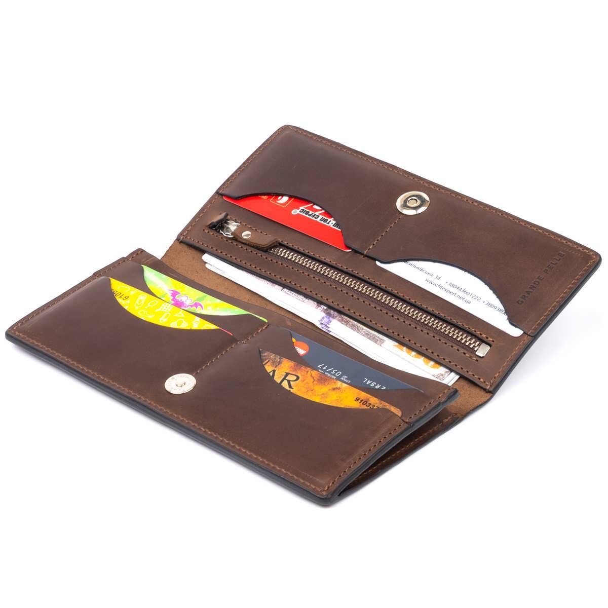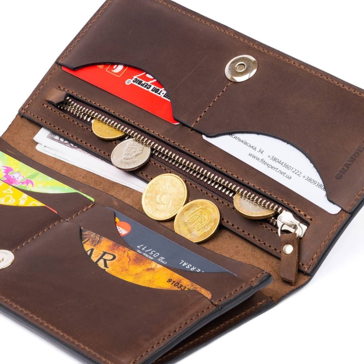 Вертикальний гаманець матовий на магнітній кнопці Grande Pelle 11314 шоколадний
