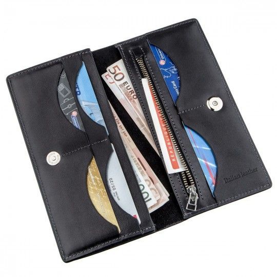 Вертикальний гаманець унісекс на магніті Grande Pelle 11212 чорний