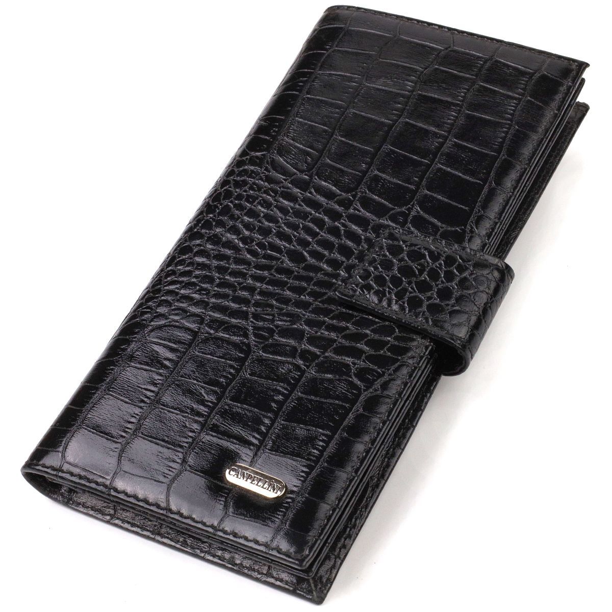 Вузький гаманець для чоловіків з натуральної шкіри з тисненням під крокодила Canpellini 21914 чорний