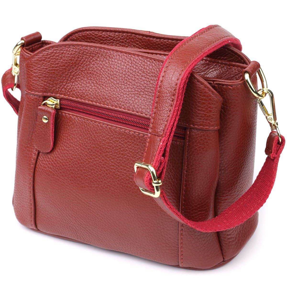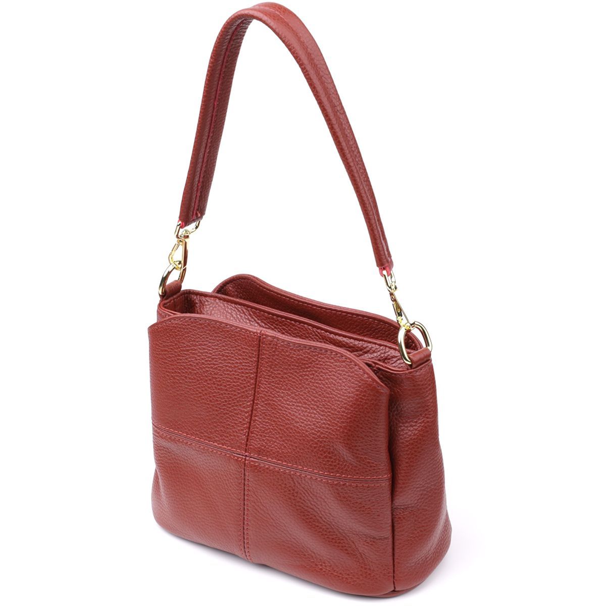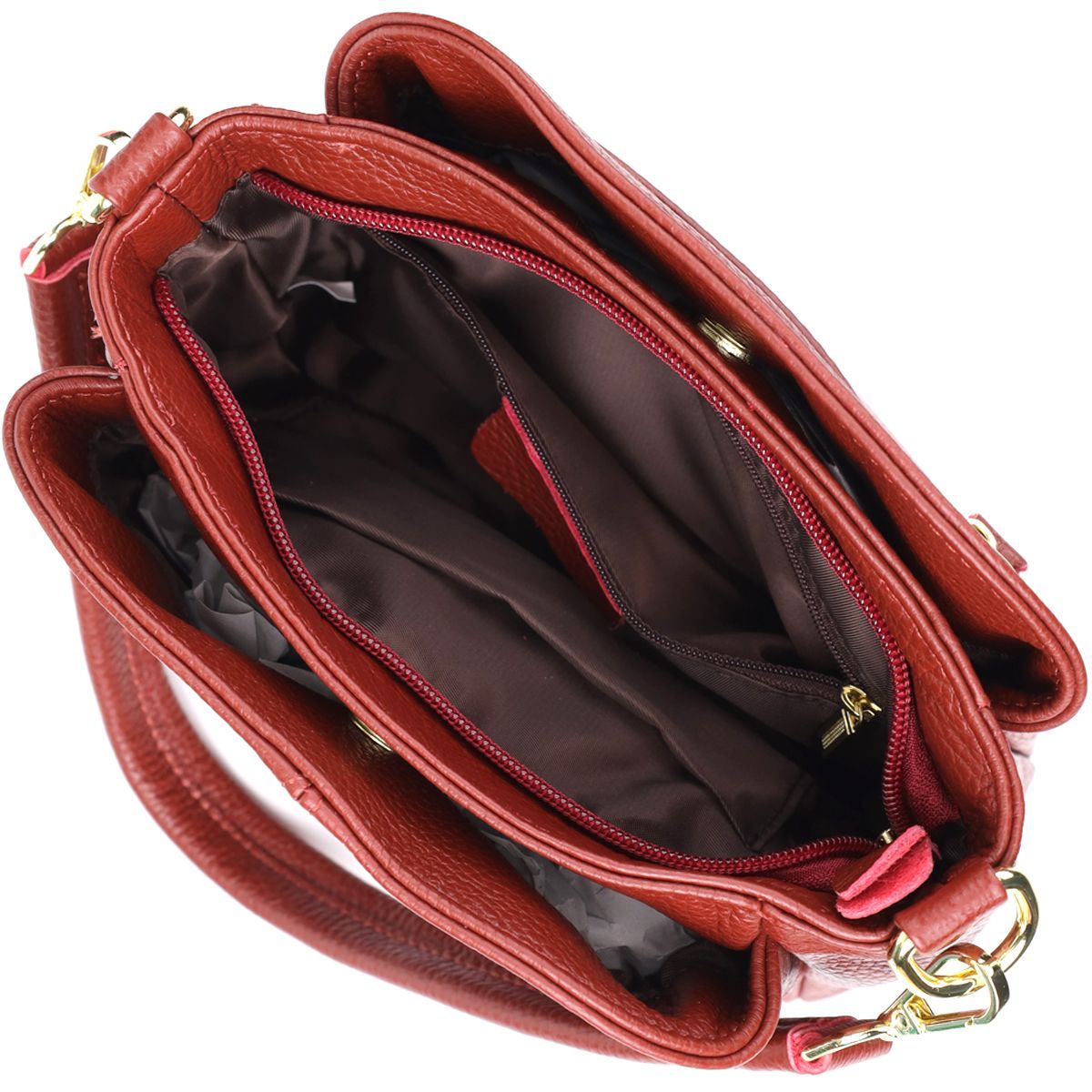 Яскрава жіноча шкіряна сумка з трьома секціями Vintage 22981 червона