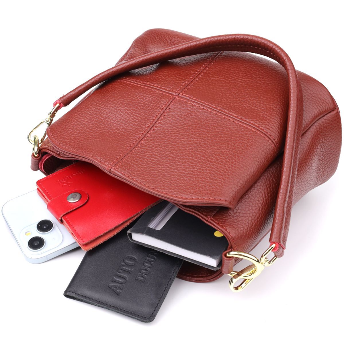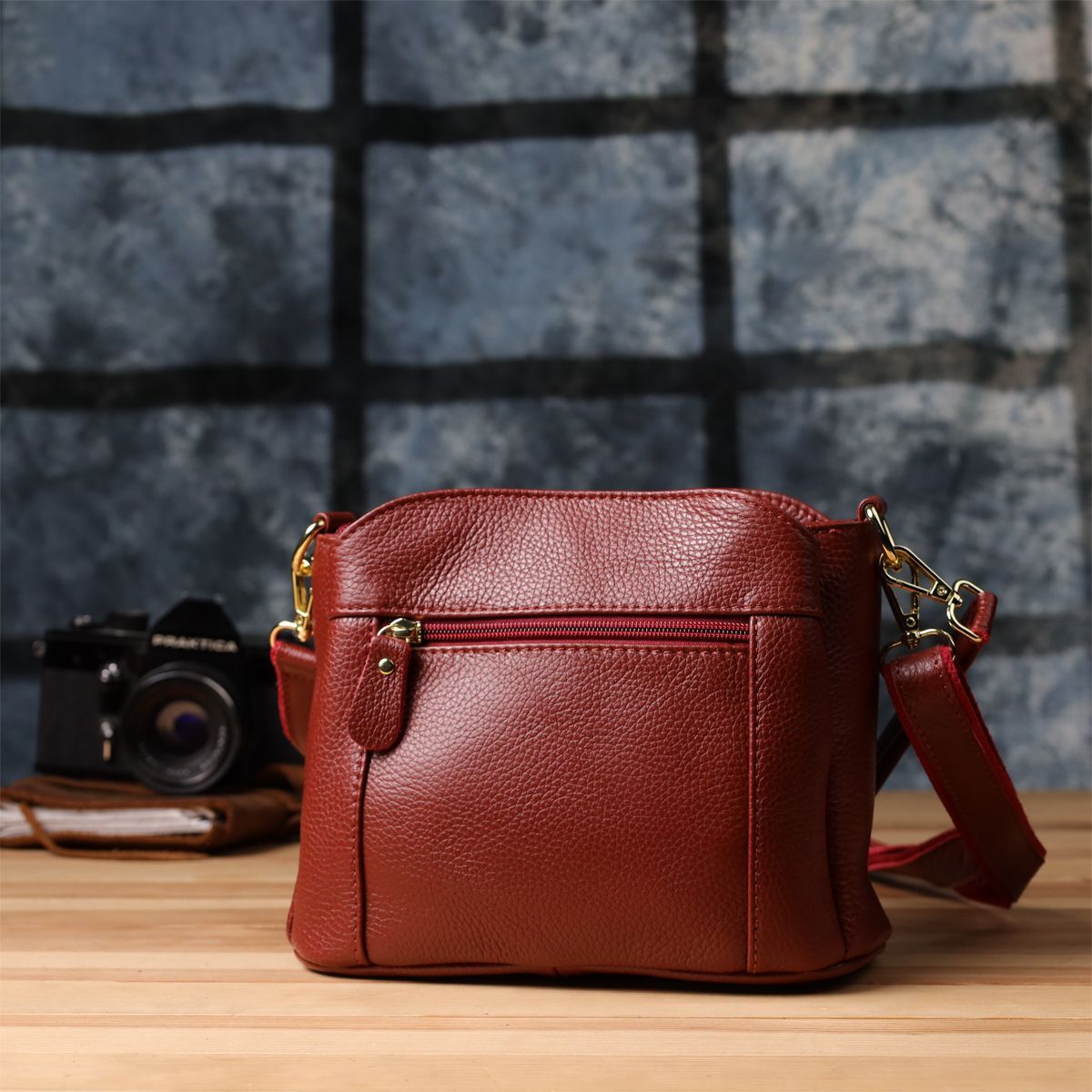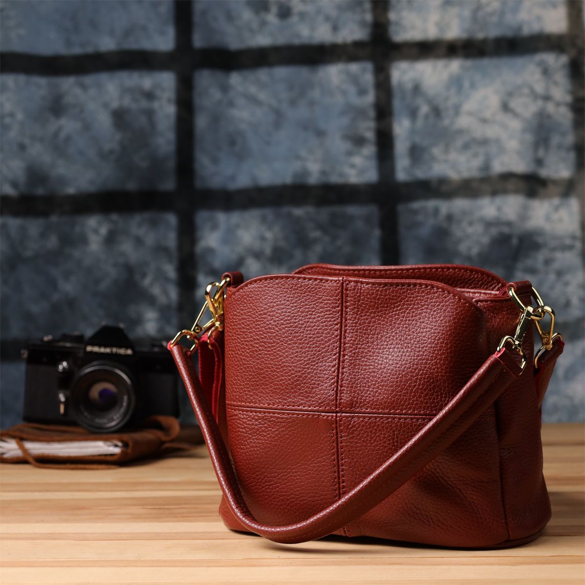 Яскрава жіноча шкіряна сумка з трьома секціями Vintage 22981 червона