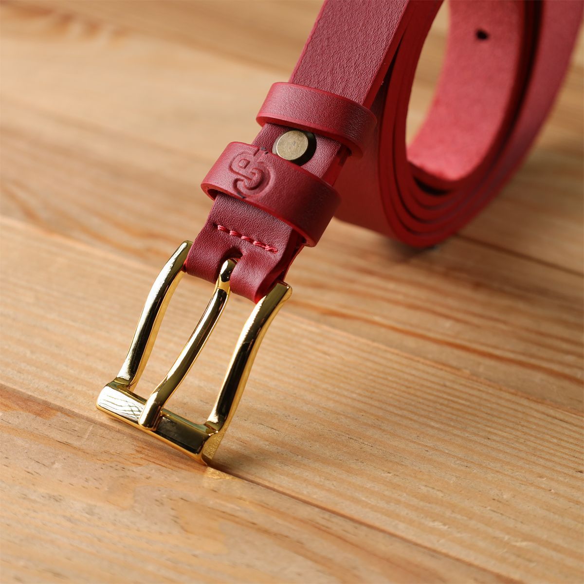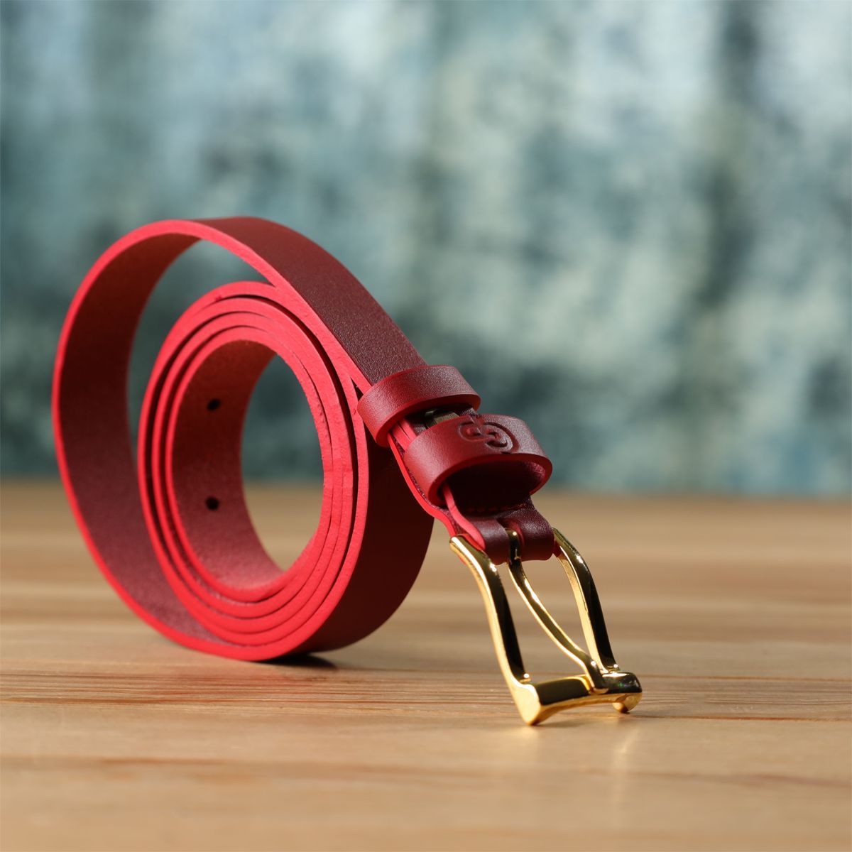 Яскравий тонкий шкіряний ремінь для жінок GRANDE PELLE 22951 червоний