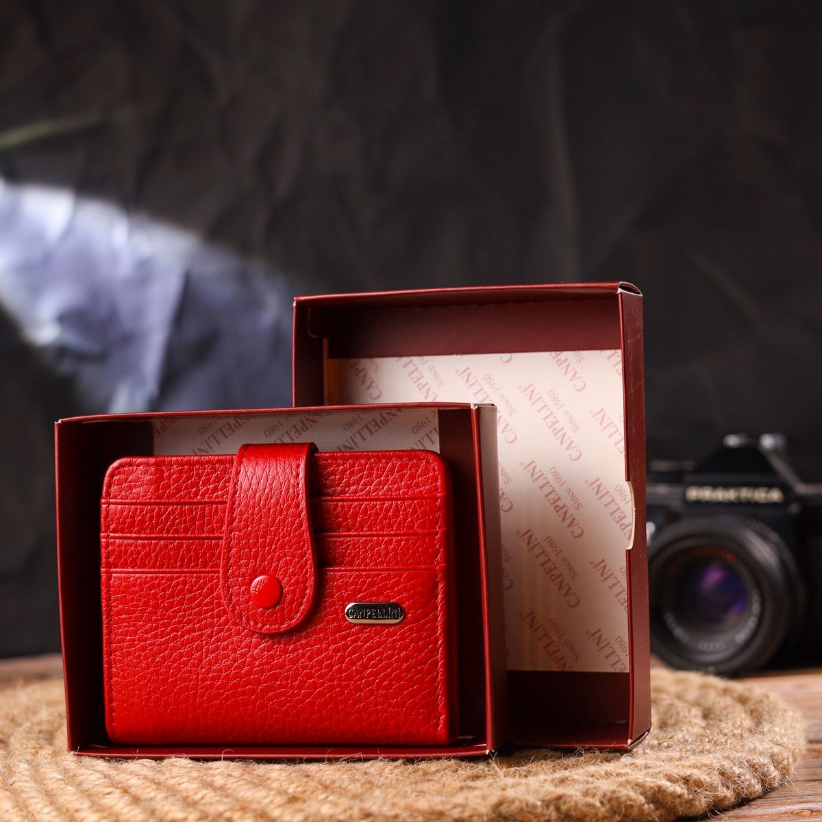 Яскравий жіночий гаманець із натуральної зернистої шкіри Canpellini 21690 червоний