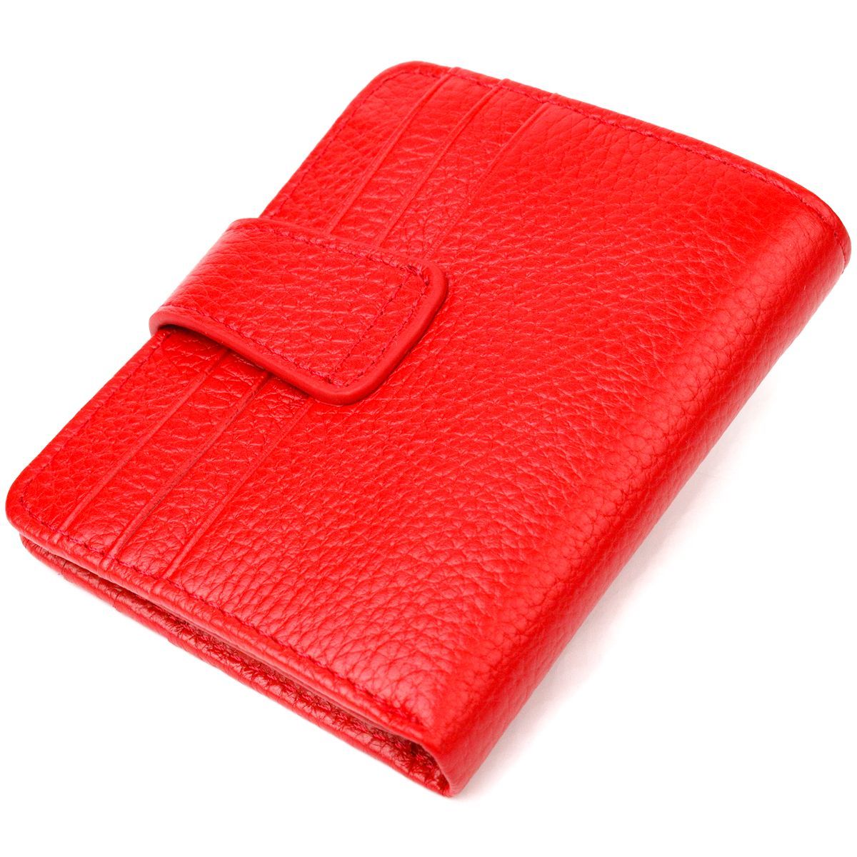 Яскравий гаманець-картхолдер для жінок з натуральної зернистої шкіри. Аксесуар має відділення для купюр, приховану кишеню та п'ятнадцять відсіків для карток, два з них під сіточкою. Закривається аксесуар у дві додавання хлястиком на кнопку. Якісний шкіряний аксесуар завжди вважався показником смаку та достатку, саме такі вироби представлені у нашому магазині, у нас кожен знайде щось для себе.