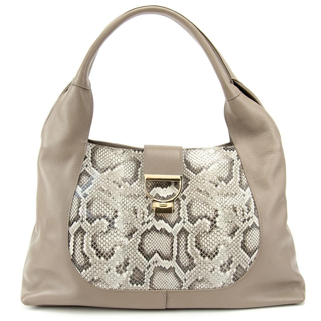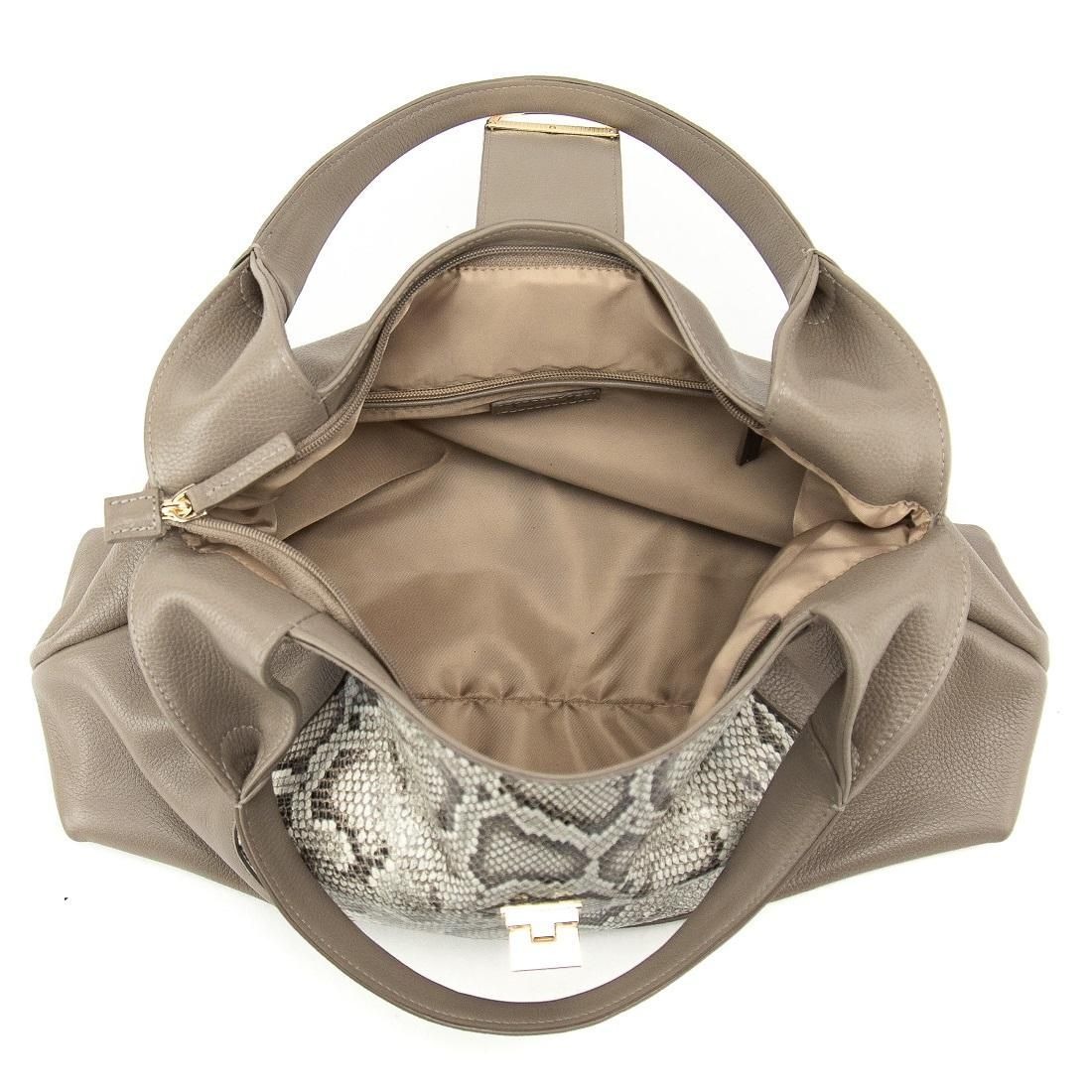 Жіноча містка шкіряна сумка на плече із вставкою рептилія Tavinchi CH-555B-R біж