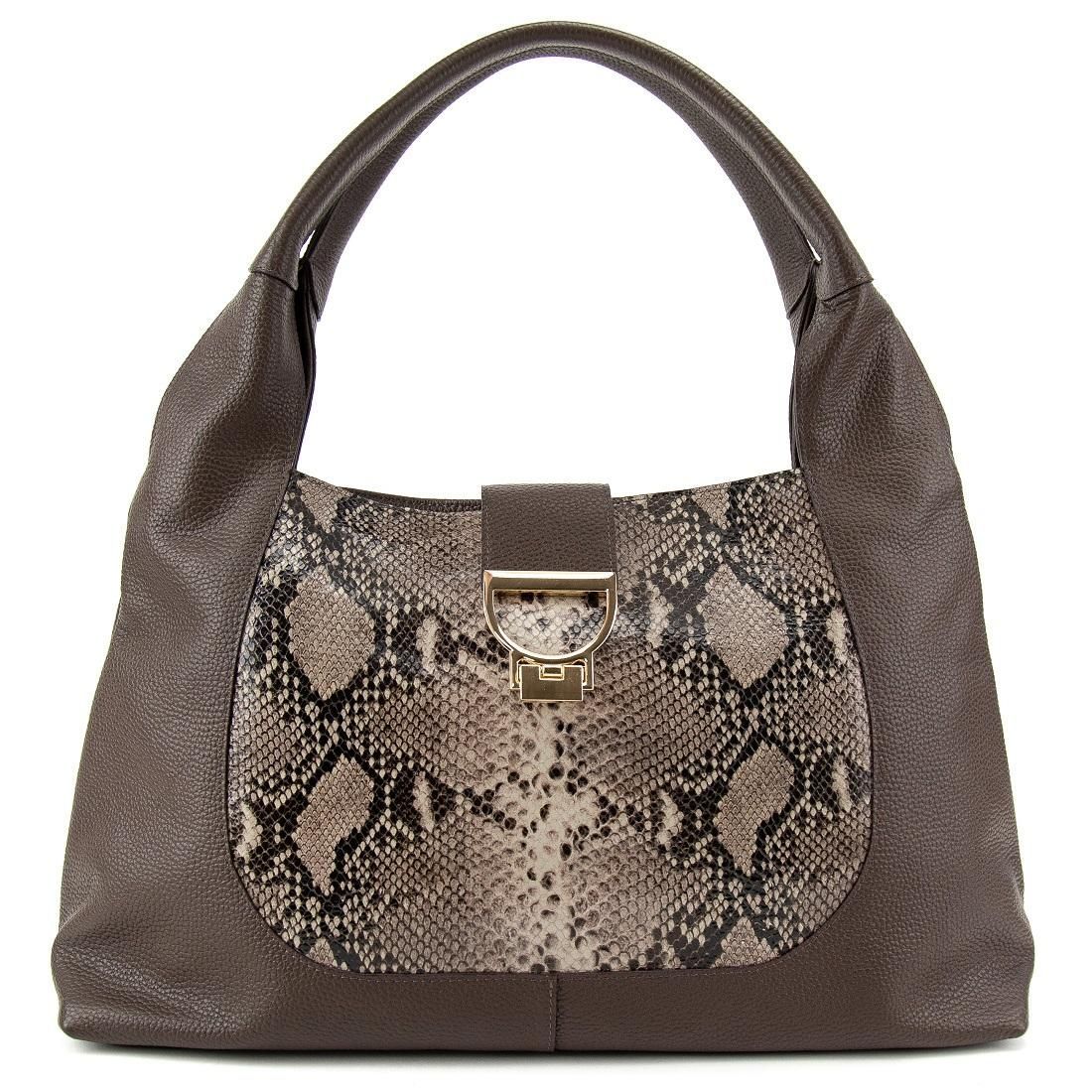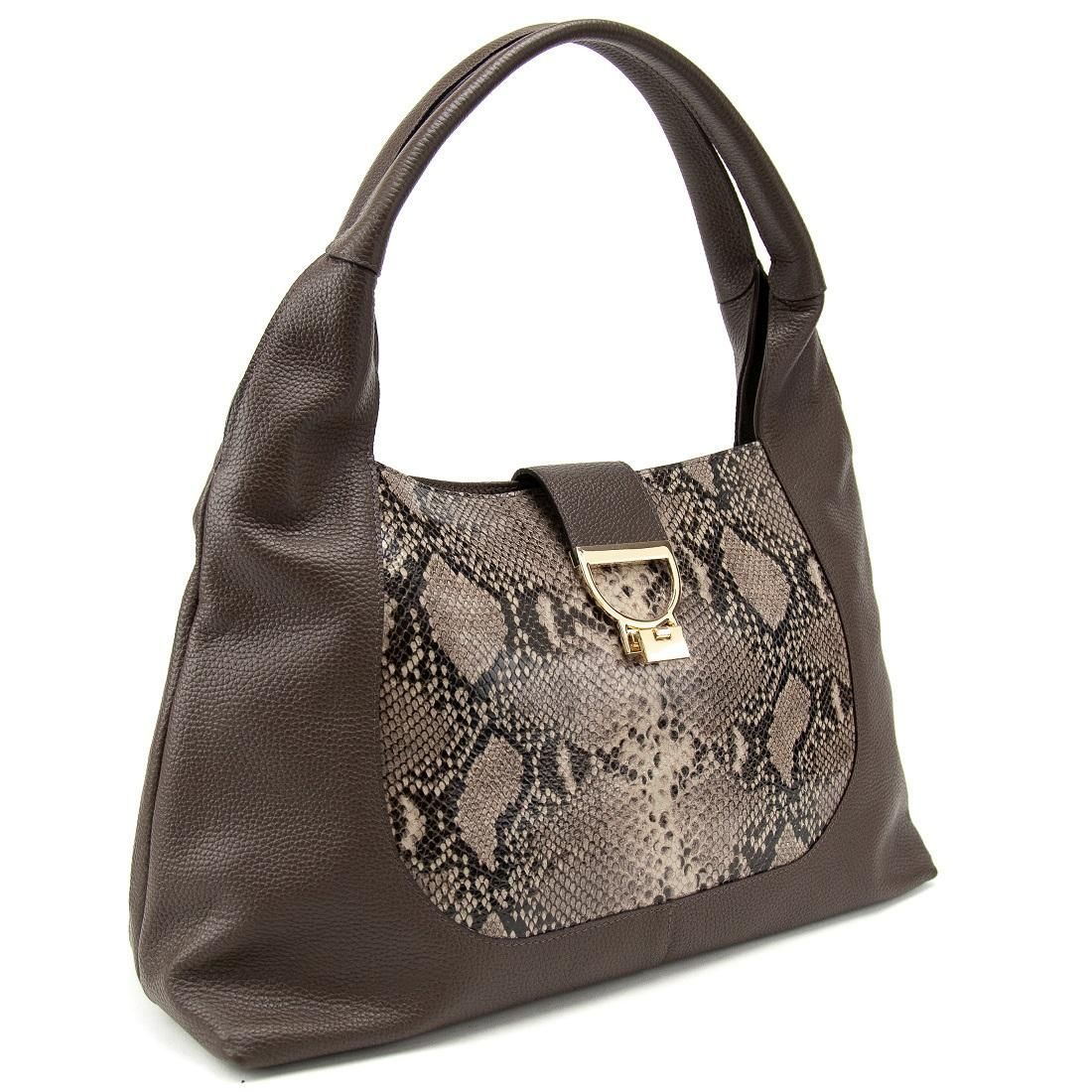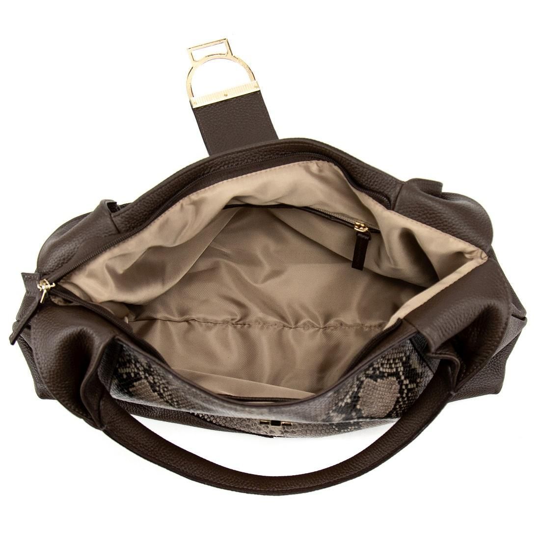Жіноча містка шкіряна сумка на плече із вставкою рептилія Tavinchi CH-555DB-R шоколад