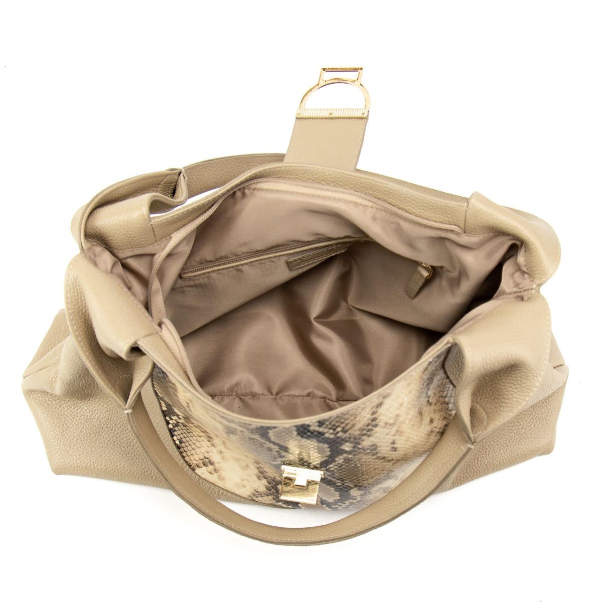 Жіноча містка шкіряна сумка на плече із вставкою рептилія Tavinchi CH-555WB-R світло бежева