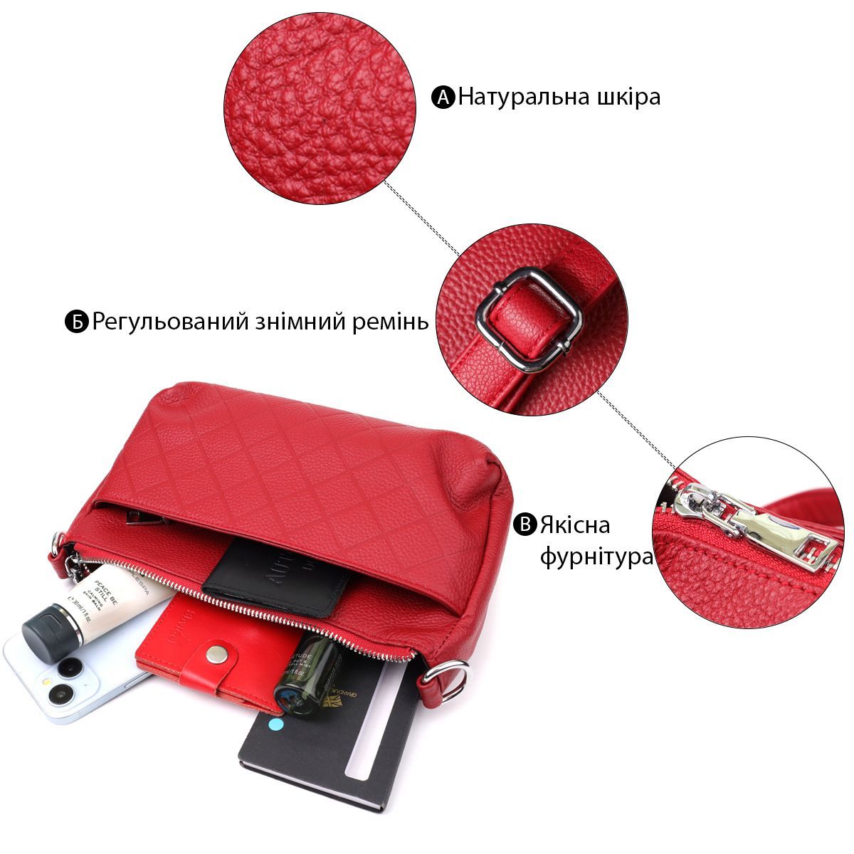 Ця червона шкіряна сумка - не просто аксесуар, а виразна деталь, яка зробить ваш образ цілісним і незабутнім.