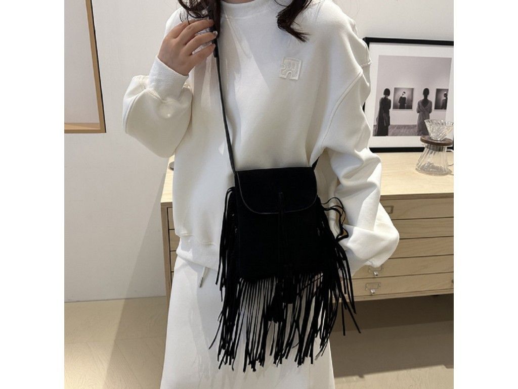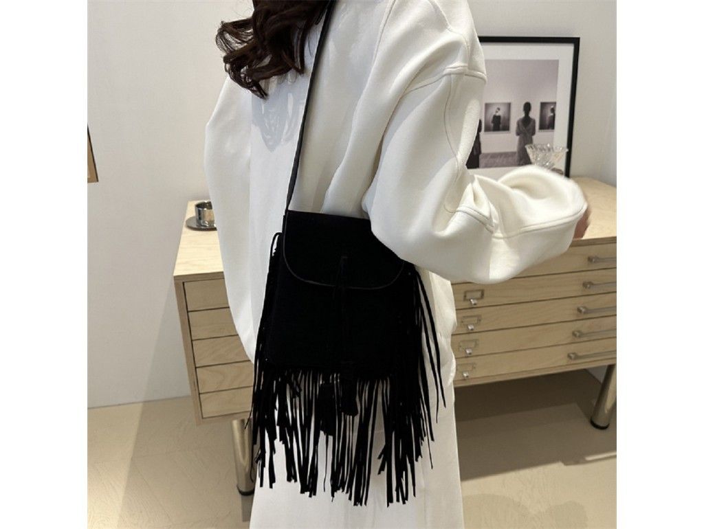 Жіноча стильна сумка з бахромою Lilly P2-9333A чорна