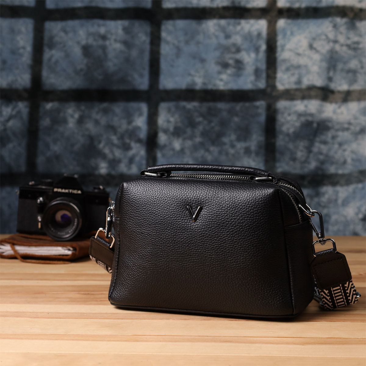 Жіноча сумка на два відділення з натуральної шкіри Vintage 22919 чорна