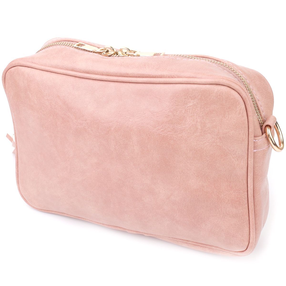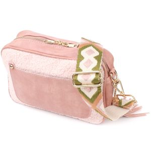Жіноча сумка з плюшевою вставкою на лицьовій стороні з екошкіри Vintage s_15133 рожева