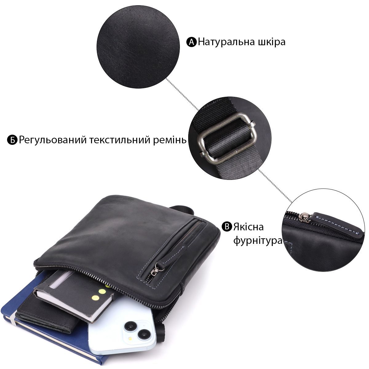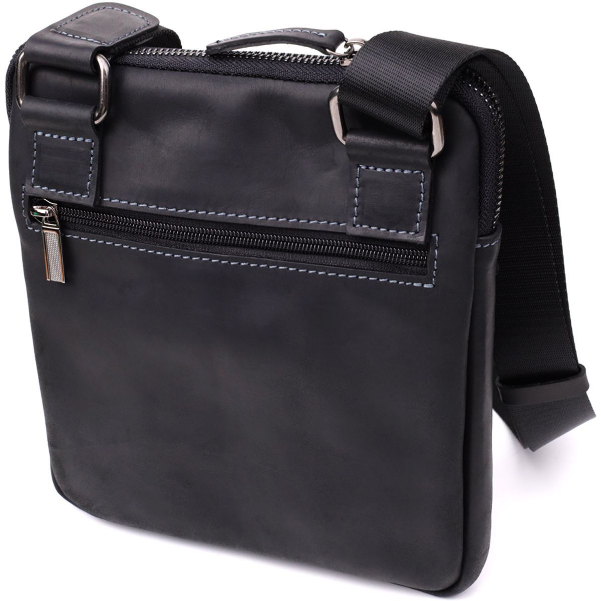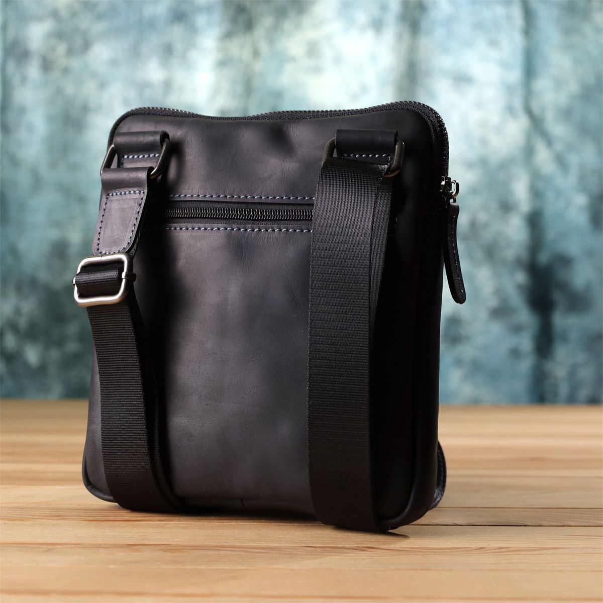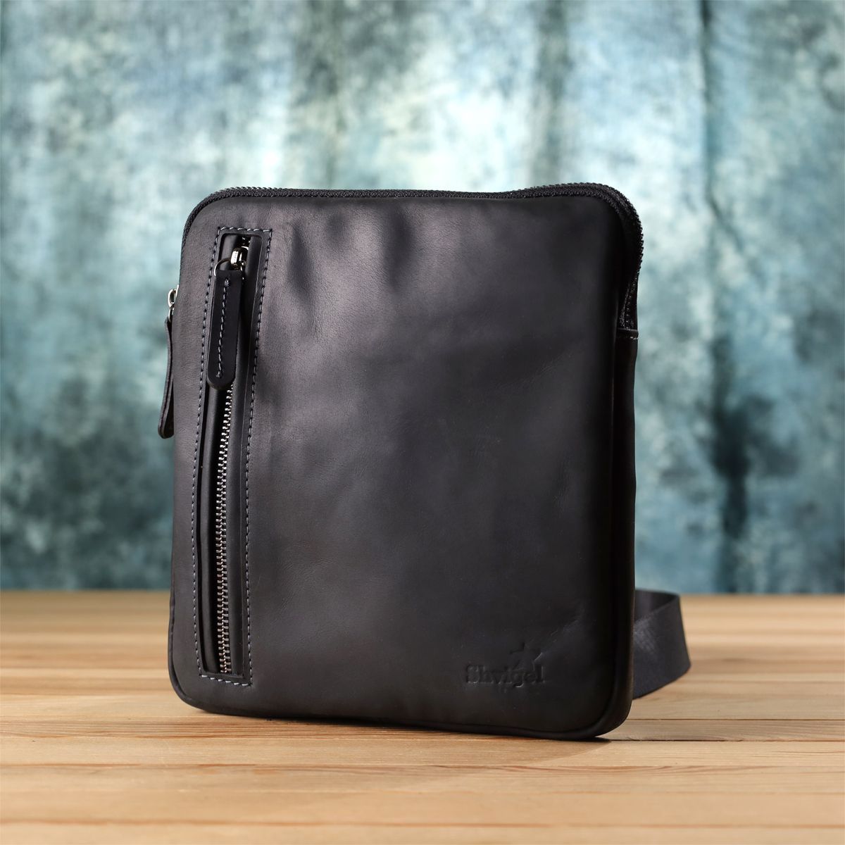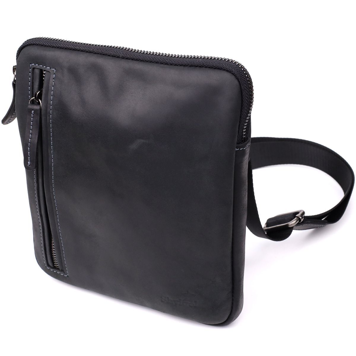 Зручна сумка для чоловіків на плече із натуральної вінтажної шкіри Shvigel 23147 чорна