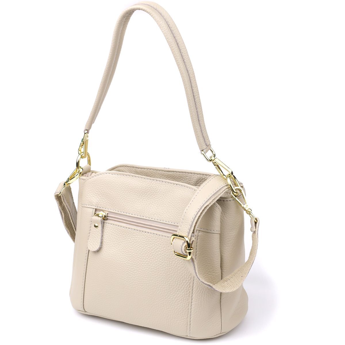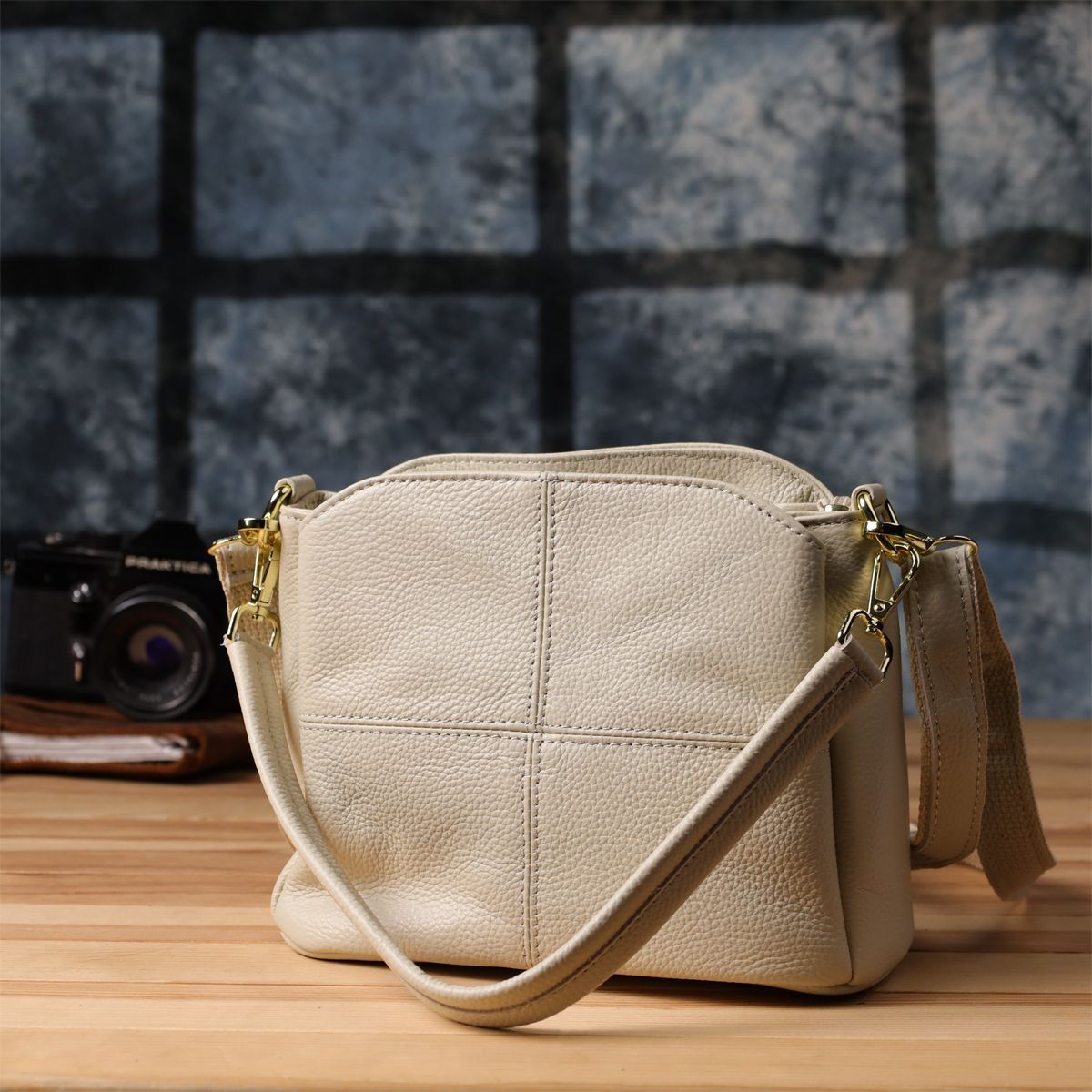 Зручна жіноча шкіряна сумка з трьома секціями Vintage 22980 біла