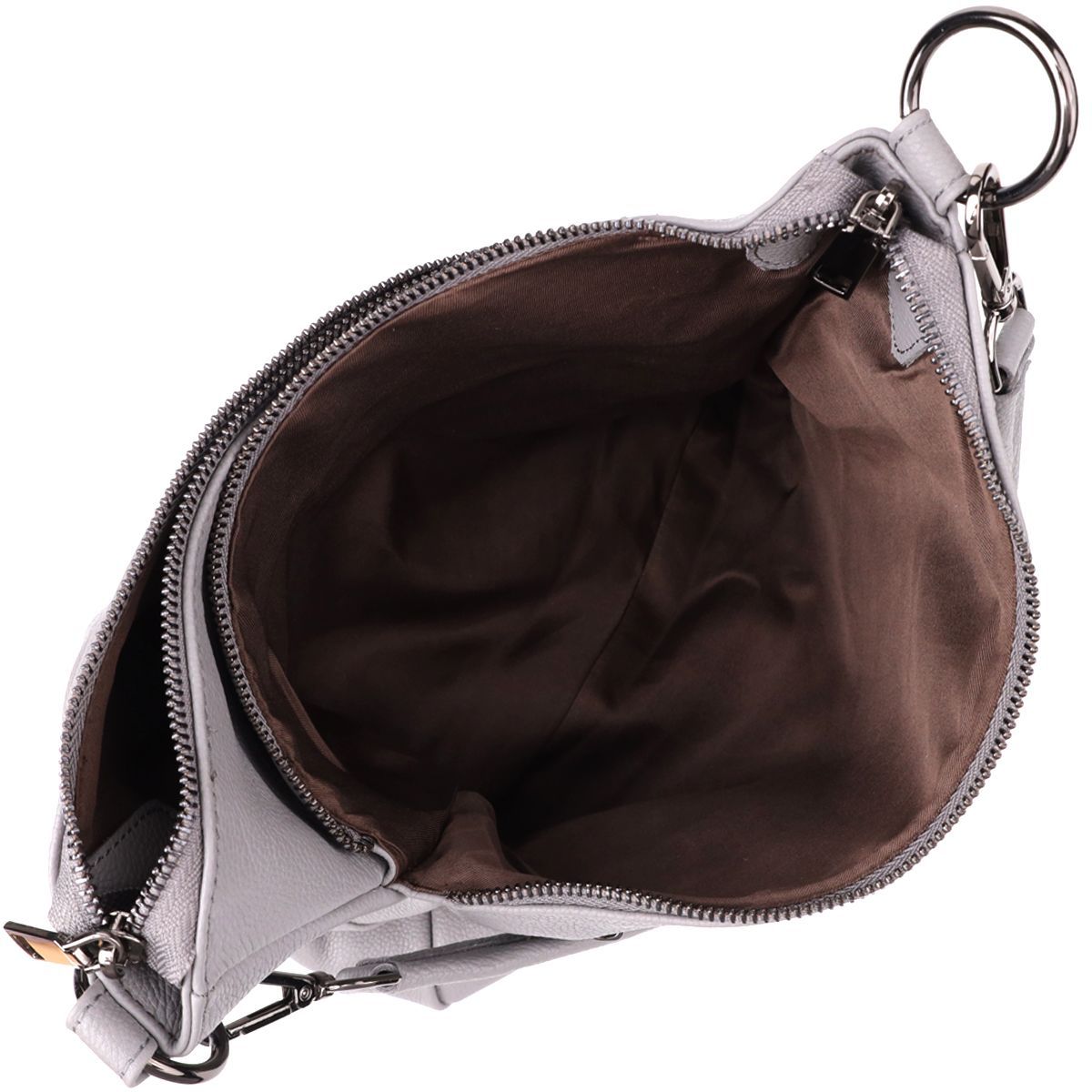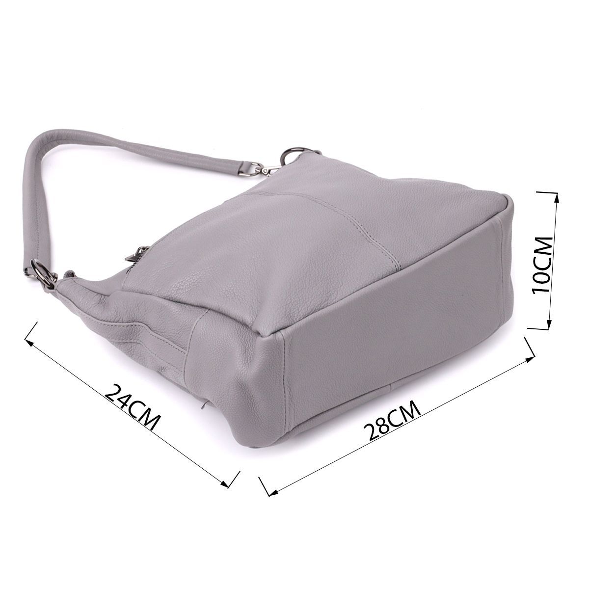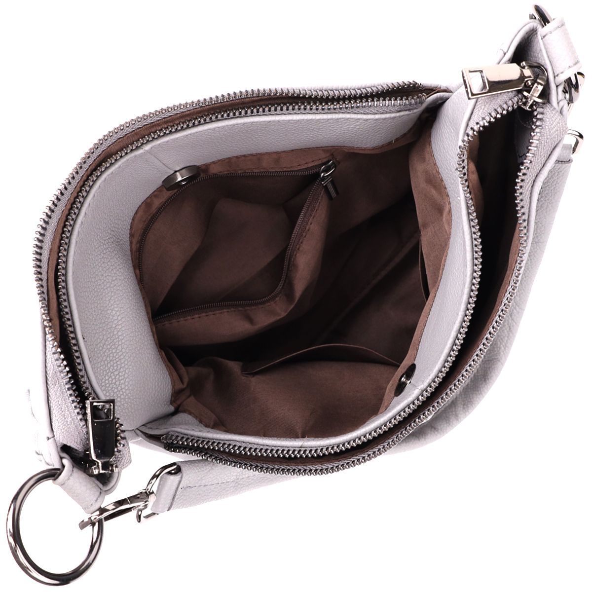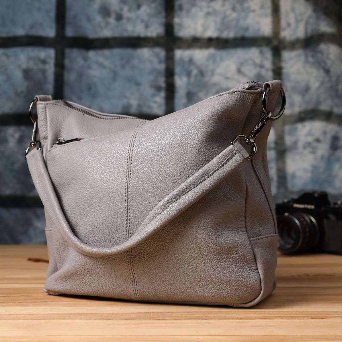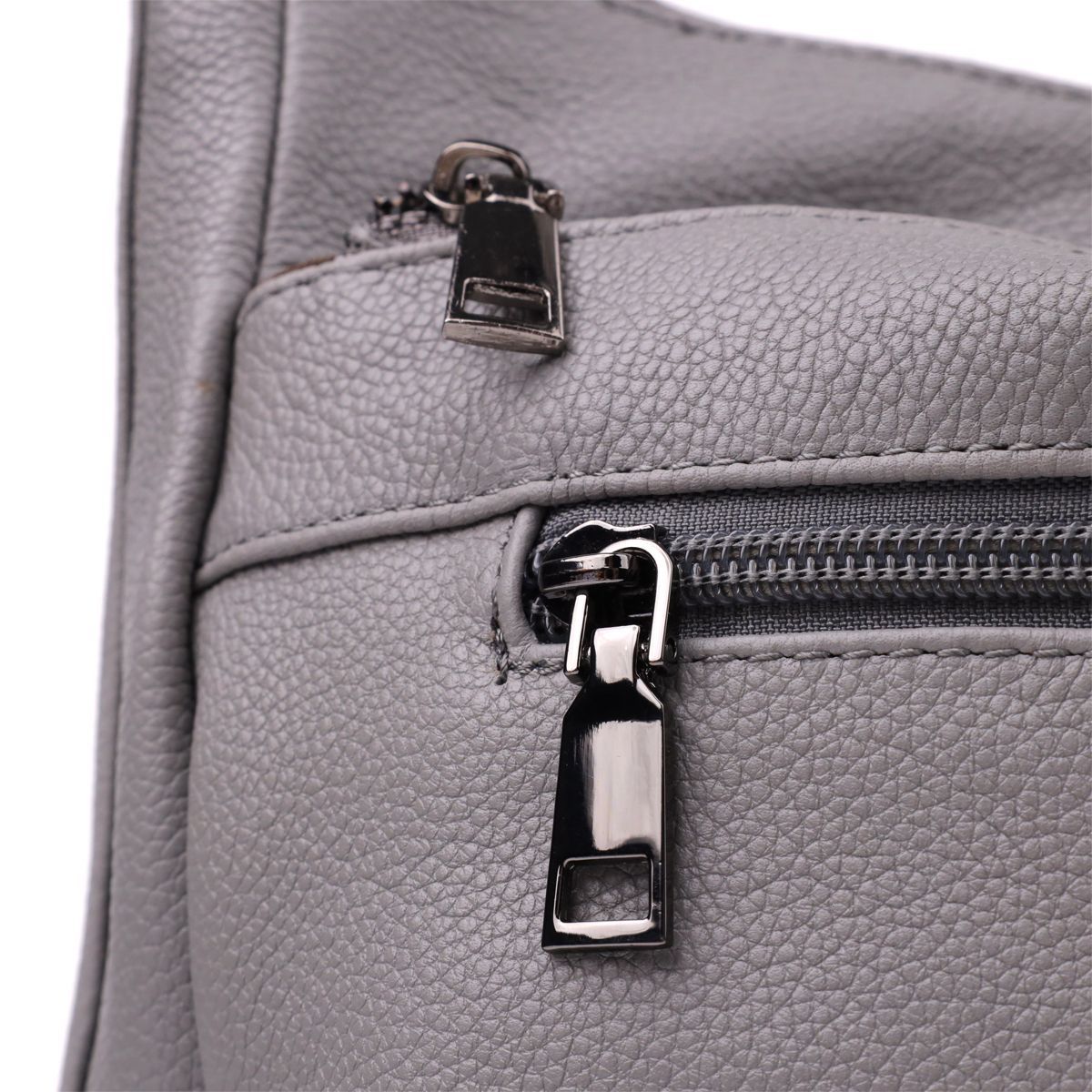 Сіра шкіряна сумка з трьома відділеннями – це витончений акцент у вашому образі та надійний супутник на кожен день.