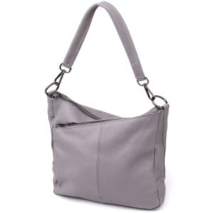 Зручна жіноча сумка з двома ремінцями із натуральної шкіри Vintage 23054 сіра