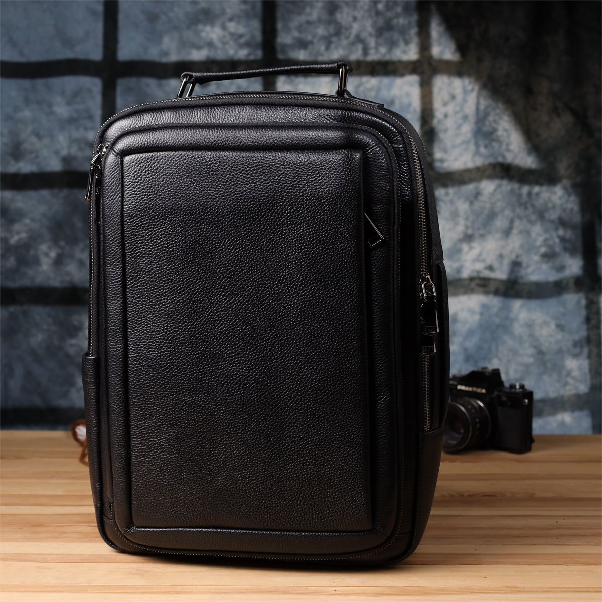 Багатофункціональний рюкзак для чоловіків з натуральної шкіри Vintage 23044 чорний