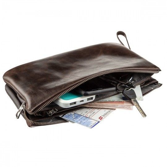 Барсетка для мужчин изготовлена из итальянской натуральной кожи. Модель смотрится очень оригинально и солидно. Барсетка идеально дополнит любой ваш образ. Изделие из натуральной кожи проносится гораздо дольше, чем из кожзама или текстиля. Дополнена барсетка качественной европейской фурнитурой серебристого цвета. С такой барсеткой вы однозначно не останетесь без комплиментов в свой адрес. Изделие можно носить на запястье с помощью съемного ремешка. Барсетка упакована в войлочный чехол черного цвета. Аксессуар будет отличным подарком для любого мужчины.