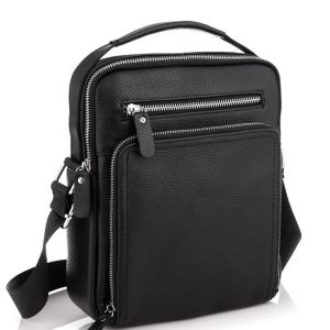Чоловіча шкіряна сумка Tiding Bag M5608-1A виготовлена з натуральної шкіри має зернисту структуру. Особливості: розміри сумки складають 21 х 27 х 6 см. Месенджер має одне основне відділення яке закривається на блискавку. Всередині головного відділення є одна маленька кишеня на блискавці з розміром 14х11 см. На лицьовій стороні розташовані дві кишені. Верхня горизонтальна кишеня на блискавці має розмір 14х12 см. Накладна квадратна кишеня має розмір 17х18 см. З заднього боку є кишеня на блискавці з розміром 18х13 см. Месенджер має високу жорсткість тому відмінно тримає форму. Підкладка - текстиль. Текстильний плечовий ремінь регулюється по довжині, в діапазоні 70-140 см. Додатково аксесуар оснащений шкіряною м'якою ручкою для перенесення. Колір чорний. Колір фурнітури: темне срібло.