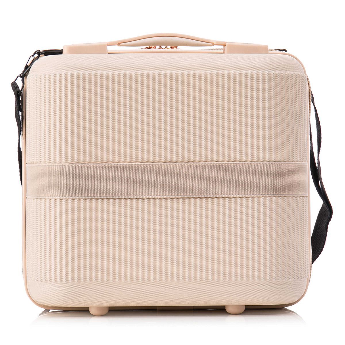 Бьюті-кейс оснащений верхньою ручкою з м'якою підкладкою, має внутрішню кишеню та розділений перегородкою на блискавці на дві частини. В комплекті поставляється ремінець, що пристібається на карабінах.