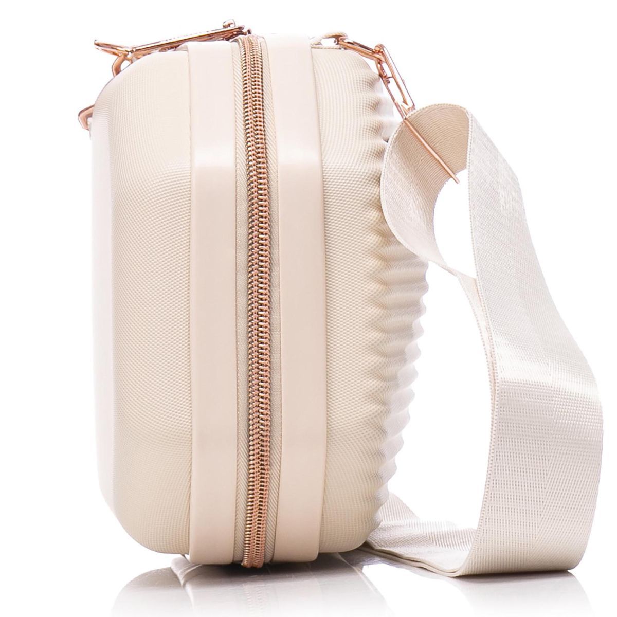 Бьюті-кейс має внутрішню кишеню та розділений перегородкою на блискавці на дві частини. В комплекті поставляється ремінець, що пристібається на карабінах.