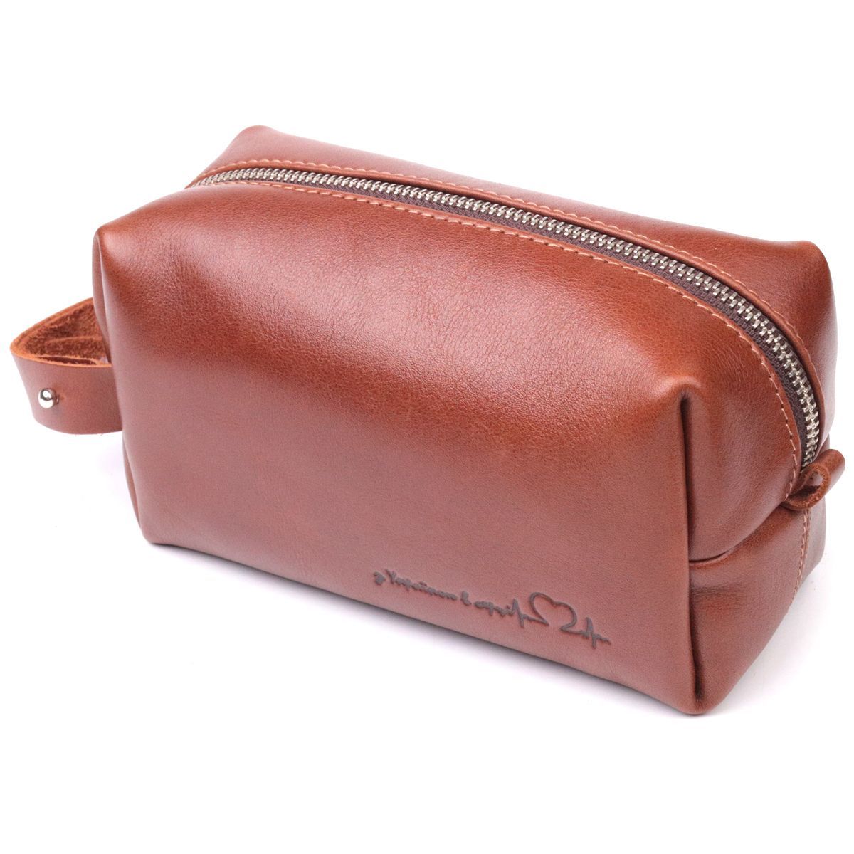 Мужская косметичка среднего размера из гладкой кожи на молнии Сердце Grande Pelle 16765 светло-коричневая