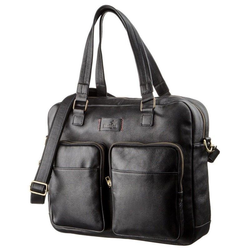 Мужская кожаная деловая сумка портфель для ноутбука SHVIGEL 19108 черный