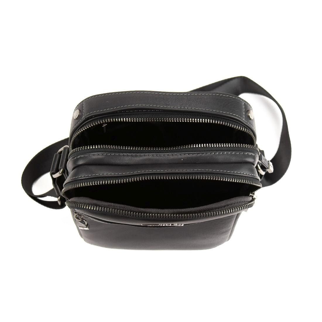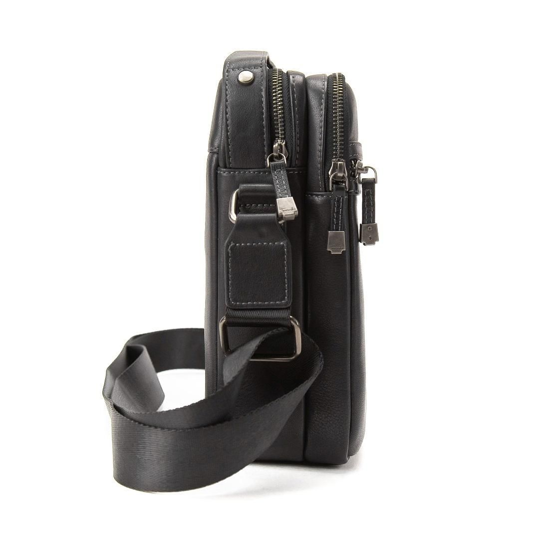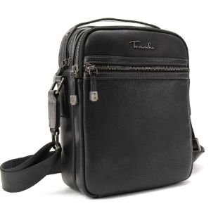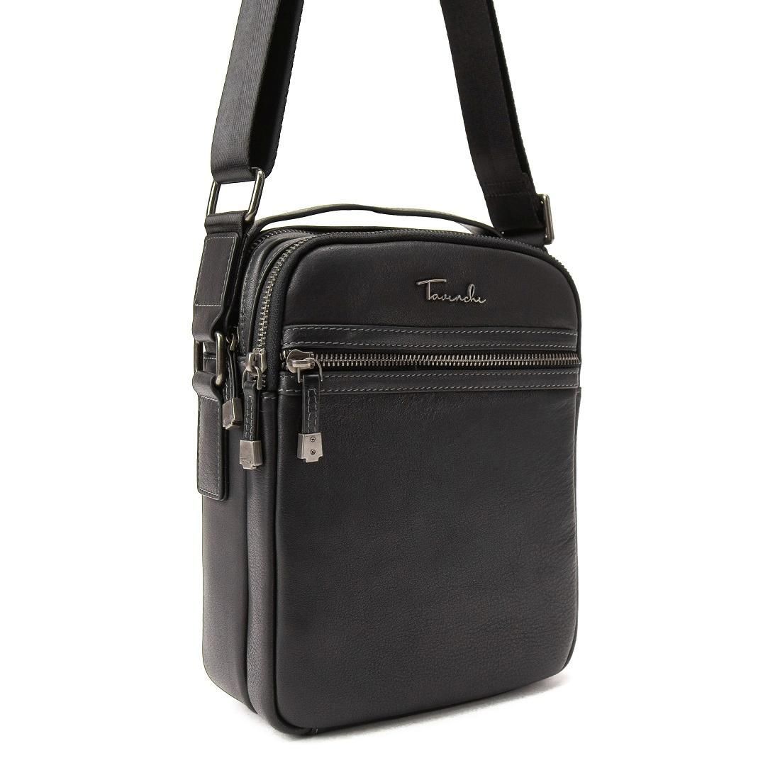 Чоловіча шкіряна сумка Tavinchi TV-SM8-9039-4A виготовлена з натуральної шкіри, що має гладку поверхню. Особливості: розміри сумки становлять 20 x 26 x 8 см. Месенджер має два відділення які закриваються на блискавку, всередині є кишені. З лицьового і заднього боку розташовані кишені на блискавці. Месенджер відмінно тримає форму. Текстильний плечовий ремінь регулюється по довжині. У сумці є зручна коротка ручка, що забезпечує комфортне перенесення виробу. Підкладка: текстиль. Колір: чорний. Колір фурнітури: темне срібло.