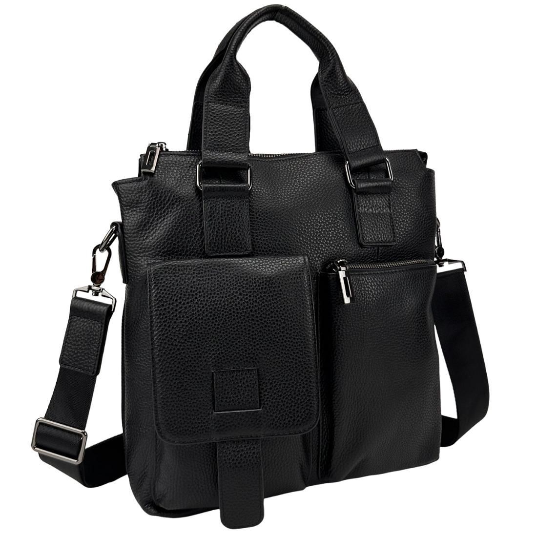 Чоловіча шкіряна вертикальна сумка А4 Bexhill Bx829A чорна