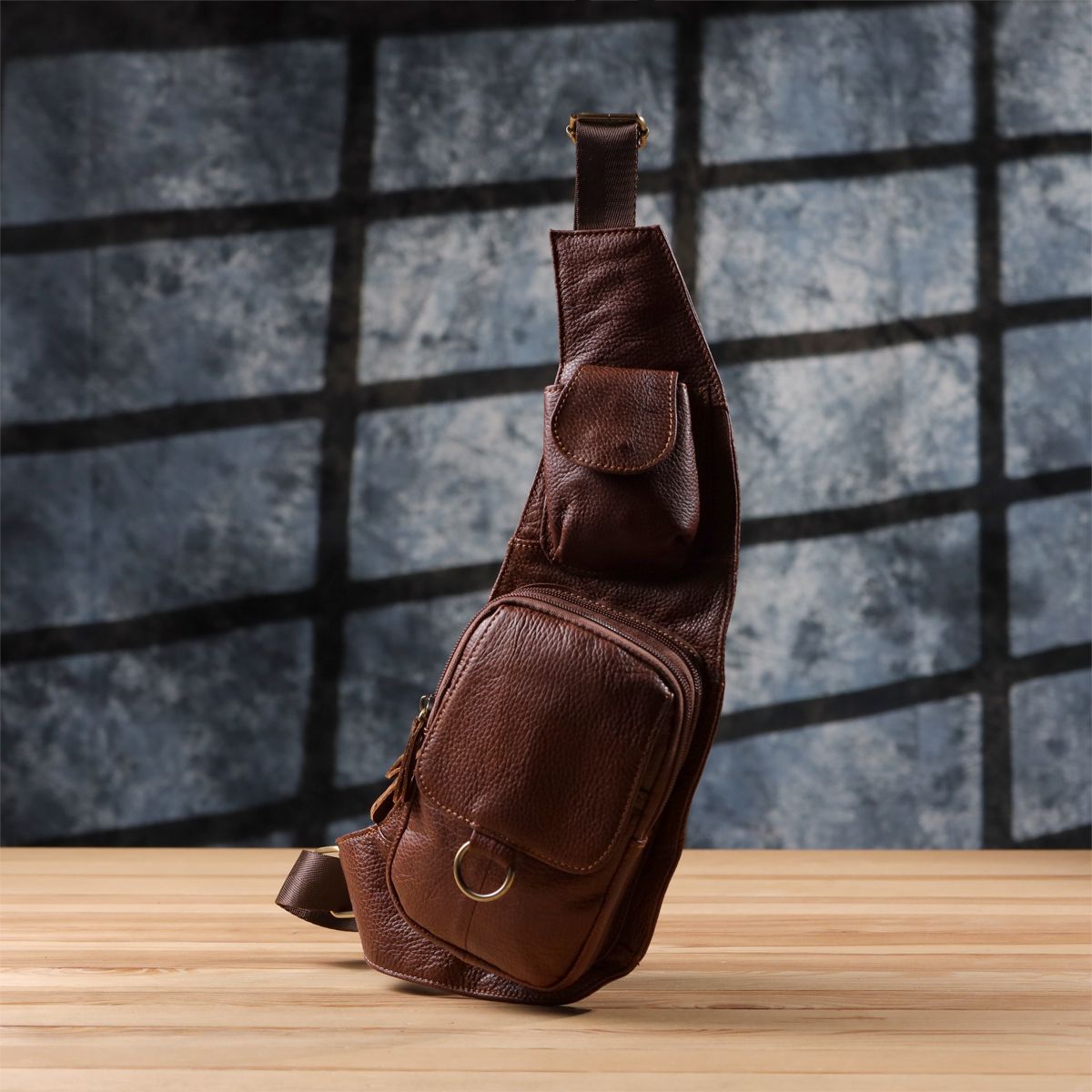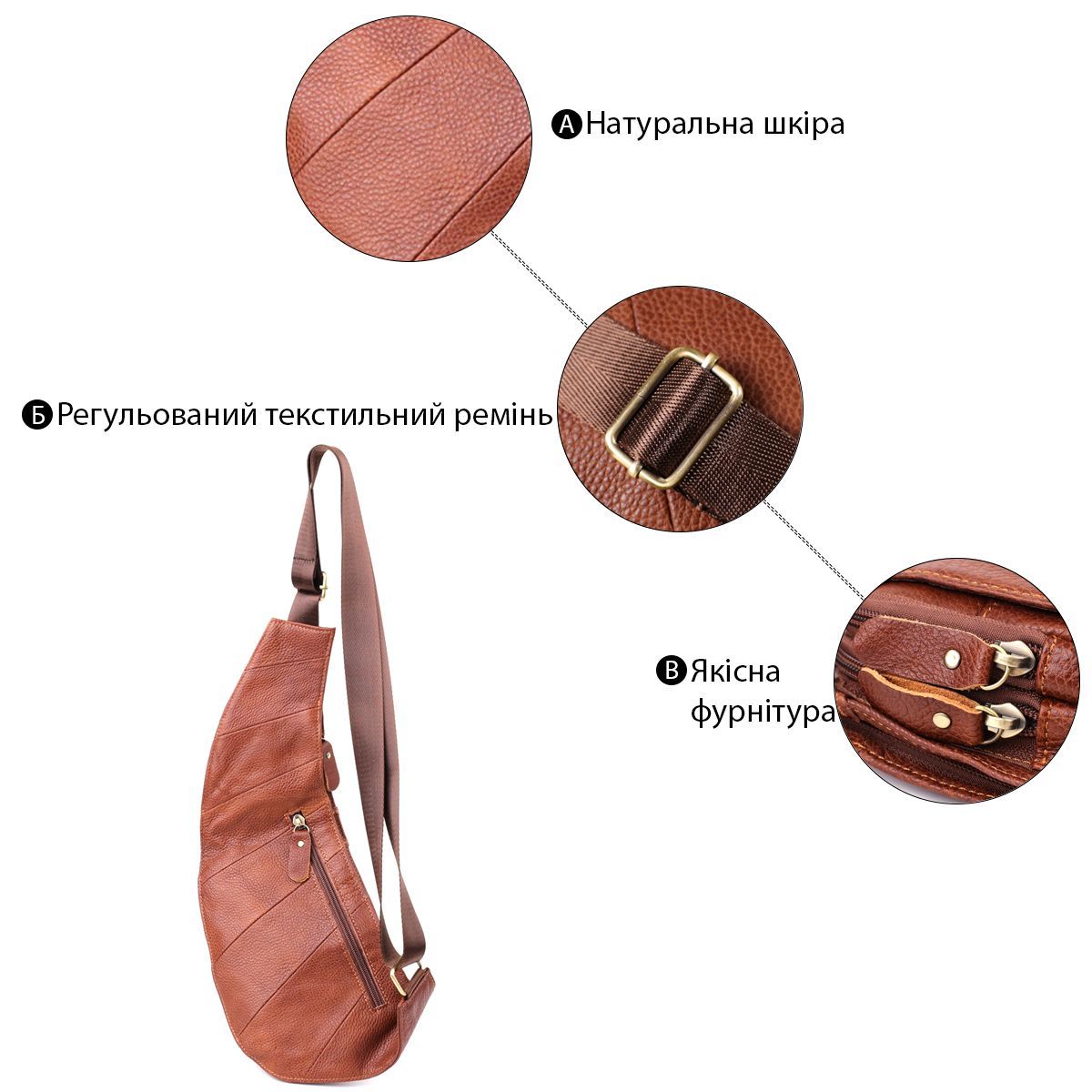 Напівкругла чоловіча шкіряна сумка через плече — практичний та стильний аксесуар для сучасного чоловіка, який цінує якість та зручність.