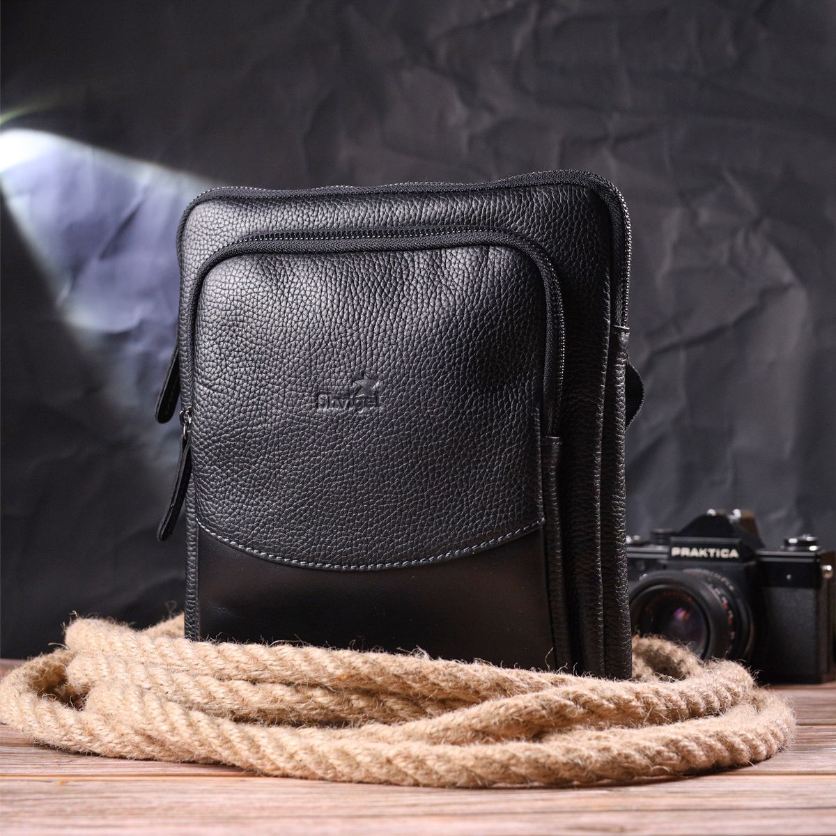 Мужская сумка из комбинированной натуральной кожи SHVIGEL 18720 черная