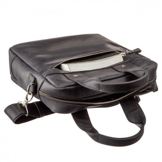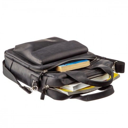 Сумка из классического дизайна под А4 от отечественного производителя. Аксессуар выполнен из кожи Crazy horse, которая винтажно смотрится. Впоследствии на такой коже могу появиться потертость, что придаст ей эффект старины. Кожаная сумка прослужит вам гораздо дольше, чем текстильная.