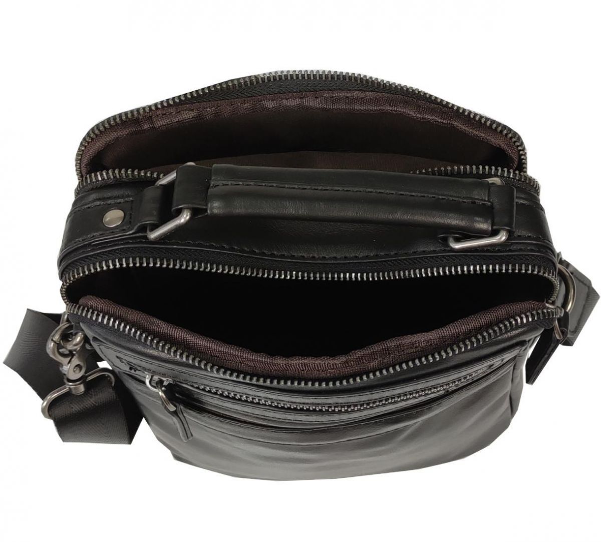 Чоловіча сумка Tiding Bag S-JMD10-161-1A виготовлена з натуральної шкіри чорного кольору. Особливості: розміри сумки становлять 20 х 24 х 6 см. Месенджер має два відділення, які закриваються на блискавку. Всередині головного відділення є дві невеликі кишені, одна на блискавці, інша відкритого типу. На лицьовій стороні розташовані дві кишені. Одна на блискавці з розміром 14х16 см, інша кишеня на магнітній кнопці 19х15 см. З заднього боку є кишеня на блискавці розміром 13х17 см. Месенджер має високу жорсткість тому добре тримає форму. Підкладка – текстиль. Текстильний плечовий ремінь регулюється по довжині, в діапазоні 70-140 см. Додатково аксесуар оснащений м'якою шкіряною ручкою для перенесення. Колір чорний. Колір фурнітури: темне срібло.