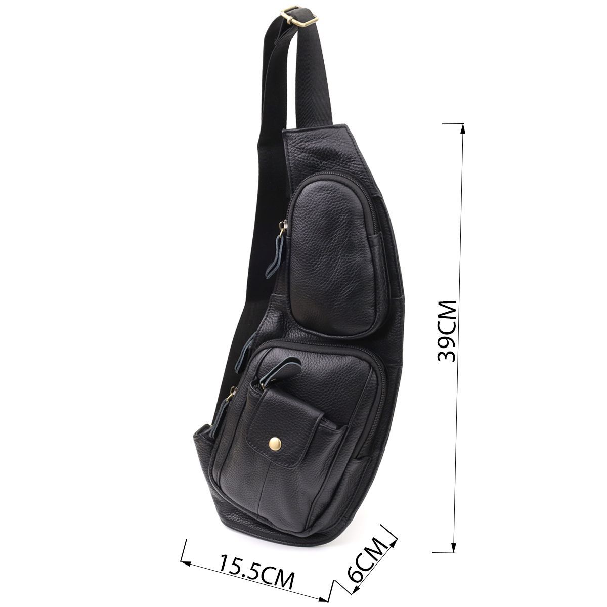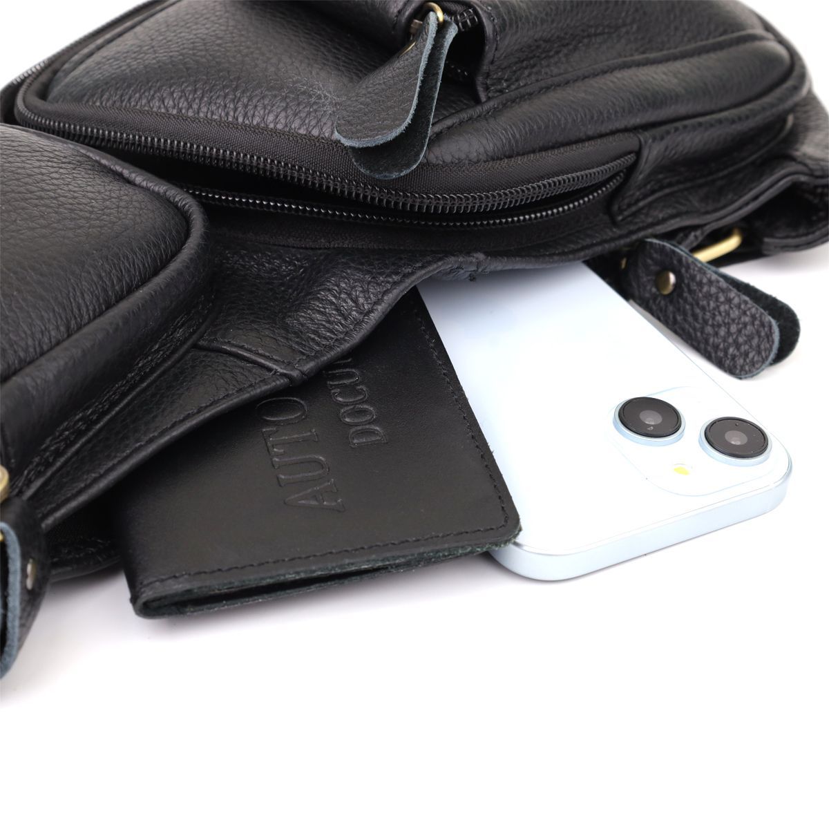 Чоловіча сумка з великою кількістю кишень із натуральної шкіри Vintage 22961 чорна