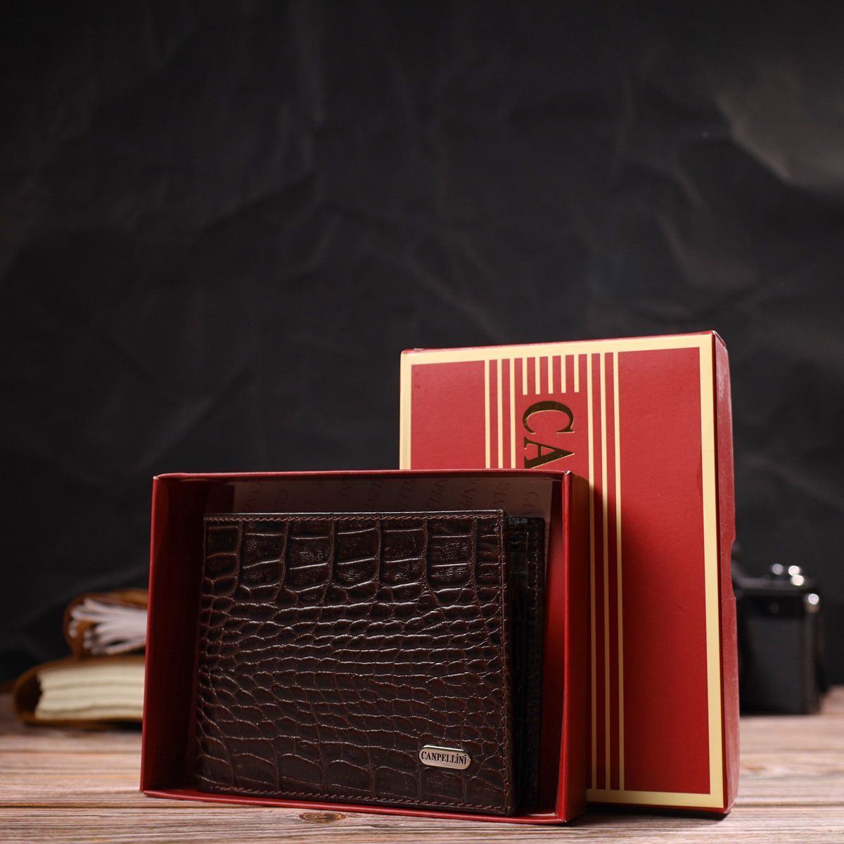 Мужской кошелек без застежки из натуральной кожи с тиснением под крокодила Canpellini 21763 коричневый